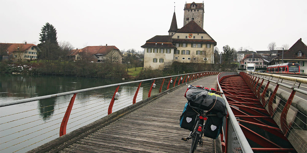 Der Weg führte mich nach Baden an der Limmat weiter nach Brugg und von dort aus über Aarau in Richtung Olten. Keine zweihundert Meter Luftlinie von dem AKW Niedergösgen entfernt, habe ich schliesslich im Zelt übernachtet. Ich fühlte mich unwohl so nahe beim AKW zu schlafen, die Müdigkeit siegte dann zum Glück. Immer wieder bemerkte ich auf meiner Reise und auch schon davor im Leben, wie Angst oft aus Unwissenheit und Ungewissheit entsteht. Zum einen aus fehlenden Informationen und zum anderen aus fehlender Selbstsicherheit, Vertrauen und Lebensfreude. Mit dieser Reise tue ich genau das, was ich schon sehr lange einmal tun wollte: Etwas ganz und gar eigenes, etwas das ich ganz alleine und nur für mich tue. Es entsteht Tag für Tag eine stärkere Gewissheit, dass wenn ich immer das tue was ich für gut und richtig halte, ich nie falsch liegen kann. So tue ich dies vehement mit aller Konsequenz. Das Ego hat infolgedessen keine Chance mehr. Am fünften Tag fuhr ich über Olten und Solothurn nach Biel. An diesem Tag bin ich in sieben Stunden über 90 Kilometer gefahren, was mich bei 50 Kilogramm Fahrrad- und Gepäckgewicht sowie 70 Kilogramm Eigengewicht schon ein bisschen stolz macht. Mein Nachtlager schlug ich nahe einer Auenlandschaft fast direkt am Wasser des Bielersees auf. In der Nacht bellten Füchse in nächster Nähe und ein mir unbekanntes Tier wagte sich sogar bis an die Zeltwand heran. Diese Nacht war die bisher schönste auf meiner Reise. Keine Züge, keine Autobahnen und kein Lärm eines AKW störte meine Nachtruhe. Alles was ich vernahm, waren Tierlaute und der Wind, der unablässig an meinem Zelt rüttelte. Zwar war es kalt und windig, doch mein Gespür für die unmittelbare Umgebung war an jenem Abend so offen wie selten zuvor. Die ganze Welt schien in einem wundervollen Glanz zu glühen.