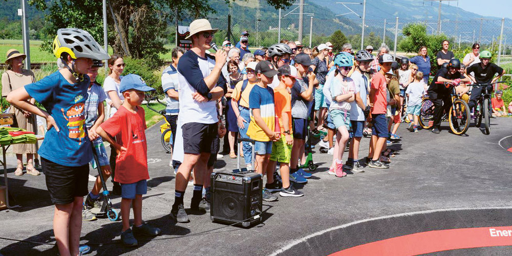 Rund zwei Jahre nachdem die Idee zum Pumptrack aufkam, konnte dieser am Samstag, 18. Juni 2022, bei herrlichstem Frühsommerwetter eröffnet und der Öffentlichkeit übergeben werden. Anwesend waren dabei nicht nur zahlreiche Sponsoren, Gönner und Vereinsmitglieder. Sandro Schmid moderierte die Top-Show der Pumptrack-Profis Serafin Dettwiler, Jerome Holger und Chris Visscher. Sie zeigten eindrücklich, was auf der durch Velosolutions errichteten Bahn alles möglich ist und den Kids und Szene-Kennern vor Ort den Puls höherschlagen liessen und manches «Wow» entlockten. Der Stadtpräsident erwähnte in seiner Ansprache unter anderem, dass es gerade im heutigen Umfeld Idealismus, Fachwissen, Toleranz, Freude, Organisation aber auch Begeisterung und Hartnäckigkeit benötige, um ein bestimmtes Ziel zu erreichen. Wie Recht er doch hatte. Und wie beruhigend und schön es doch ist, wenn Gion, angesprochen auf die rückblickend grösste Herausforderung im Projekt, sagt, dass dies, nebst Geld, eigentlich die Entwicklung des Logo gewesen sei.