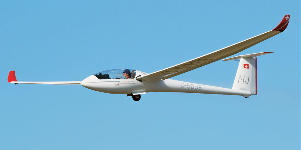Fliegen findet also viel im Kopf statt, bis es so richtig gut klappt. Was sind denn gute Bedingungen zum Fliegen, will ich wissen und erfahre, dass bestes Flugwetter mit Wolken und wechselhaften Bedingungen zu tun hat. Eine lange Sonnenscheinperiode ist ungünstig. «Die Luft soll frisch sein, denn Tage alte Luft ist zu trocken. Damit Thermik entstehen kann, braucht es eine gewisse Luftfeuchtigkeit. Am besten sind labile Luftschichten, das heisst Sonne mit Wärme und Wolken, die kältere Luft unter sich haben. Es sollte von unten bis oben konstante Temperaturabnahme haben, sonst wird die Thermik gebremst und man kann keine langen Strecken fliegen». Lange Strecken bedeuten mindestens 250 Kilometer oder bei Weltmeisterschaften eher 550 Kilometer. Jägli ist begeistert, rein mit Sonnen- und Windenergie Distanzen bis 1000 Kilometer zurücklegen zu können – ohne Zwischenlandung. Man wisse am Tagesanfang nicht, wohin man wirklich komme. Reicht es bis zum Matterhorn oder sogar noch weiter? Das tönt ziemlich weit für einen Tag. Mich nimmt wunder, wie hoch so ein Segelflieger kommt. «Ich war mal mit Freigabe vom Tower in Zürich auf 5500 Meter Höhe.» Dann nimmt man über Funk Kontakt mit den Fluglotsen in Zürich auf, damit sich Luftverkehr und Segelflieger nicht in die Quere kommen. Ohne Genehmigung kann man 4500 Meter hoch fliegen in der Schweiz.