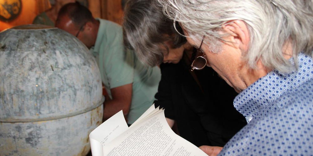 Nachdem Kirchgemeindepräsidentin Susanne Krättli-Lori und Gemeindepräsident Christoph Caprez den Inhalt vorsichtig aus der Kugel entnommen haben, schreitet Armin Kohler, Mitglied der Baukommission und Stadthalter der politischen Gemeinde, zur Tat. Mit Hammer und Meissel klopft er vorsichtig den Deckel von der gutverschlossenen Metallbüchse. Natürlich konnte sich nur die ältere Generation teilweise noch erinnern, was 1980 in die Kapsel gelegt worden war. Für die Jüngeren war es wie das Aufmachen einer Wundertüte.