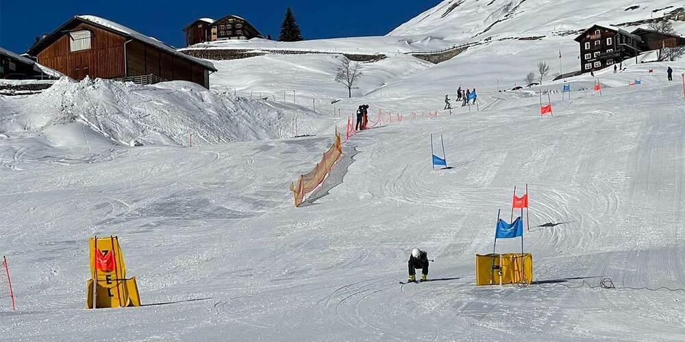 Das Team des Skilifts Junker in St. Antönien leistete im Vorfeld sehr gute Arbeit, so dass die Organisatoren mit Topverhältnissen auf der Loipe und der Piste allen Startenden faire Wettkämpfe bieten konnten. Mit 120 Startenden in den Disziplinen Langlauf, Riesenslalom und einer Kombination in diesen Disziplinen wurde um die Meistertitel gekämpft. Der zum ersten Mal ins Leben gerufene polysportive Gruppenwettkampf wurde auch positiv aufgenommen und die Vereine hatten den Plausch daran. Es ging darum, dass in einer 4er-Gruppen eine Stafette absolviert werden musste, mit jeweils vier Gruppen im Massenstart. Zuerst eine Laufpartie bis zu den parkierten Ski, dann ein Pumptrack mit den Skiern, dann wieder eine eher strenge Laufpartie zur Übergabe auf eine Rutschpartie mit Rutschteller und zuletzt noch ein Riesenslalom bis ins Ziel. Da der Gruppenwettkampf losgelöst von den Meisterschaften am Vormittag durchgeführt wurde, ist er von allen Turnvereinen mit viel Humor und Spontanität aufgenommen worden; so wie Turner:innen halt sind. (Urban Mathis)