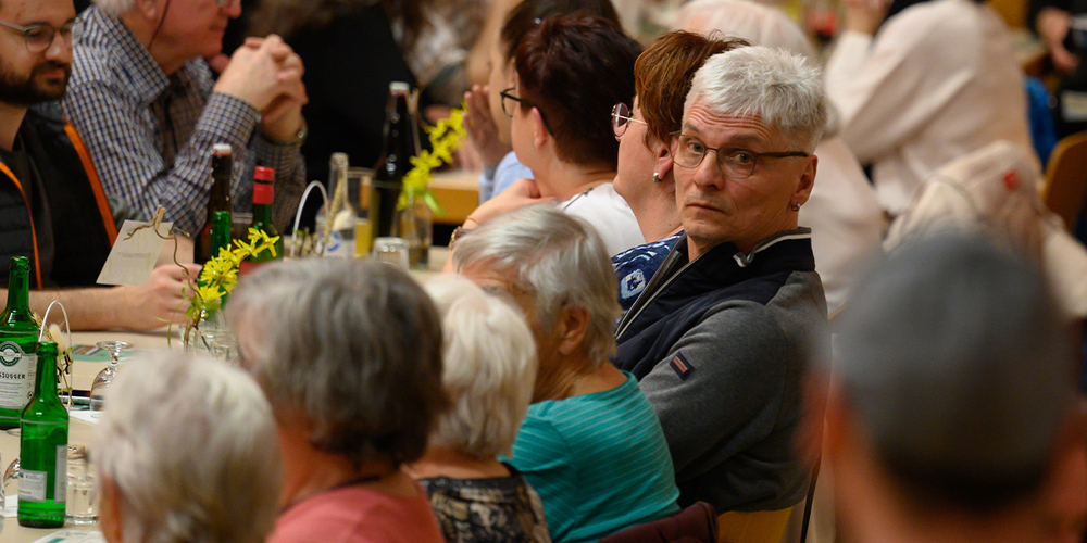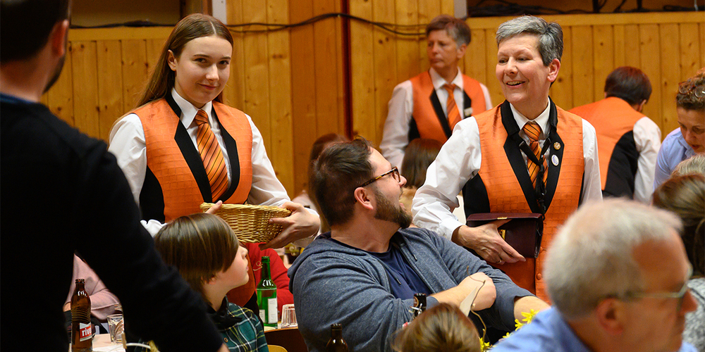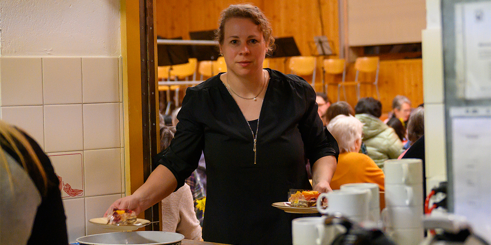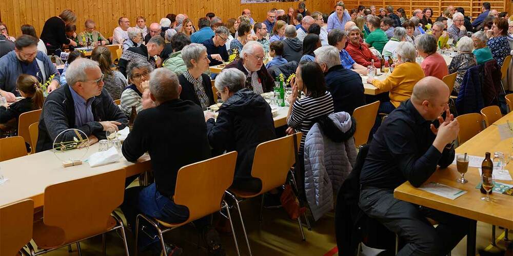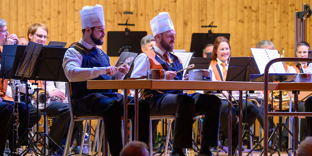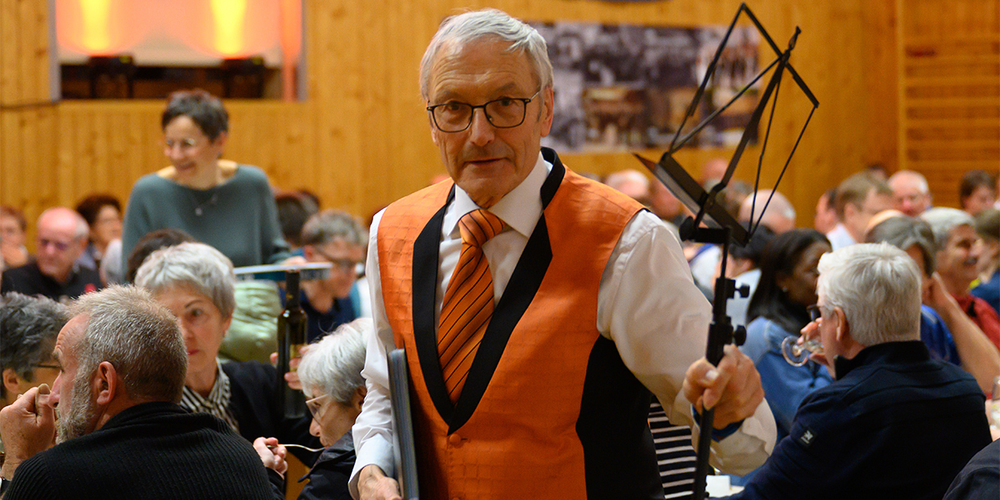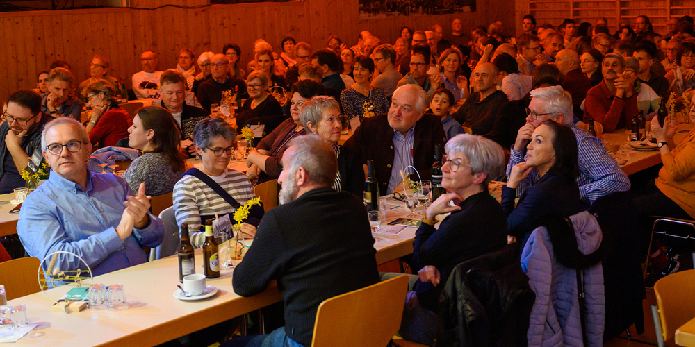 «Und weisst du noch, wie früher in der Halle auch gekocht wurde?», wollte die ‘alte Halle’ wissen. Noch tagelang trug man den Geschmack des Ausgangs mit sich. Gekocht wurde auch am heutigen Abend. Erst übernahmen die Männer Kelle und Töpfe und trugen «Eine kleine Tischmusik» von Manfred Menke auf höchst unterhaltsame Art vor, bevor die Musig Knödel kochte («Kannst du Knödel kochen») von Karel Vacek.