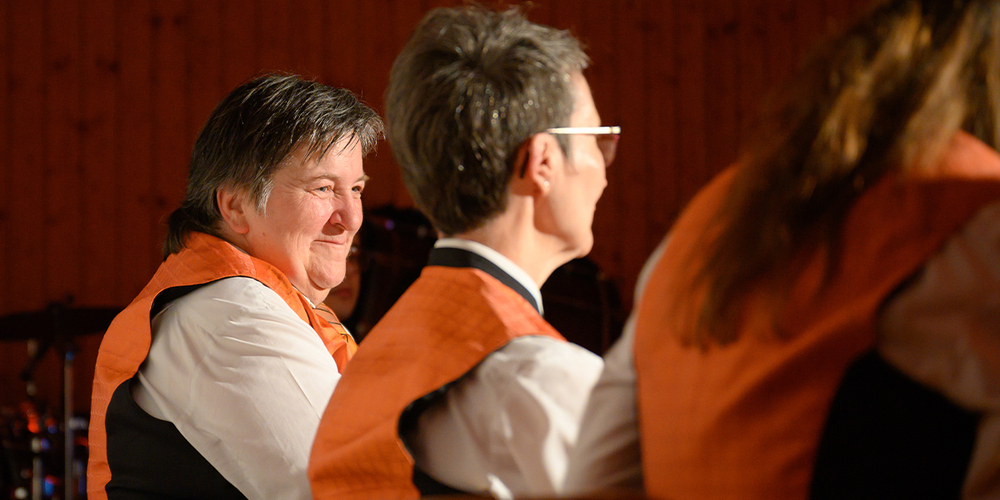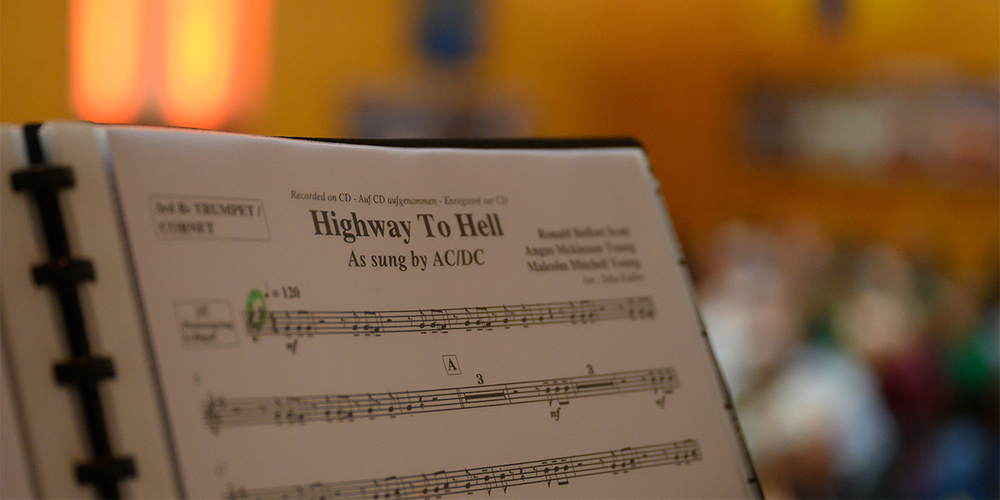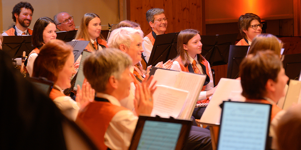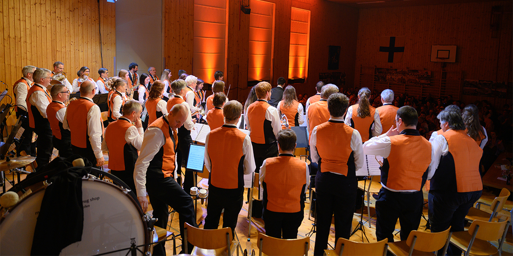 Rauchen in der Halle? Während den Aufführungen? Auch das hatte die alte Halle erlebt. Zeiten, als man kaum die Lotto-Zahlen richtig lesen konnte vor lauter Qualm. Am heutigen Abend sehen wir allerdings nur «Smoke on the Water» von Deep Purple. Doch damit wurde dem Publikum noch einmal richtig eingeheizt, bevor langsam, aber sicher und unter Tränen (Moderation: TOP…!) der «Final Countdown» von Joey Tempest eingeläutet wurde. Mit der Zugabe «Highway to hell» gaben die Musikant:innen noch einmal ihr Bestes. Auch der Hauswart kam nun noch einmal so richtig in Fahrt. Seine freie Übersetzung des Titels in «Heigoh wenn’s hell isch» leitete elegant über zur Einladung, im Anschluss an das sehr schöne Konzert in geselliger Runde den Abend gemütlich bis in die Morgenstunden ausklingen zu lassen.