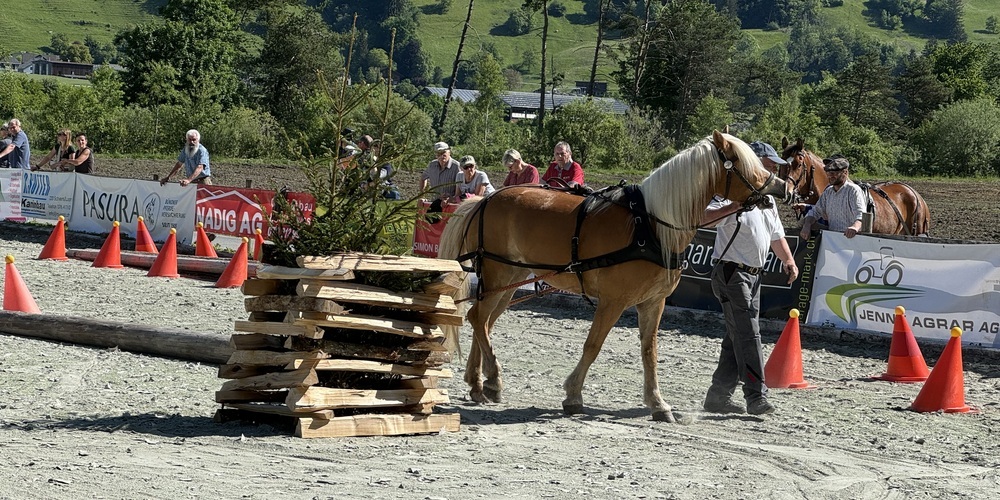 Am Pfingstmontag traten in Grüsch auf dem Fahr- und Reitplatz 29 Gespanne zur Holzrückemeisterschaft an. Die national ausgeschrieben Meisterschaft konnte wieder schweizweit am meisten Teilnehmende anlocken.