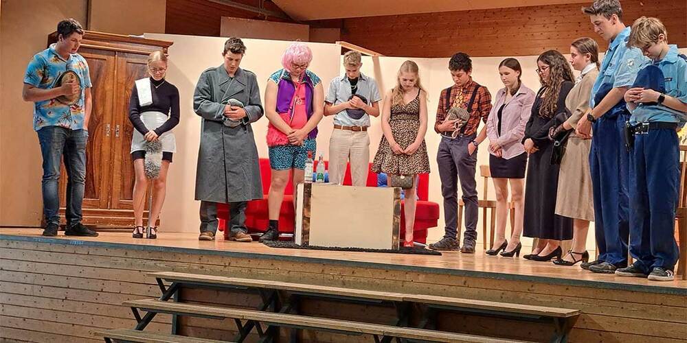Am nächsten Freitag, 7. Juni um 20 Uhr findet in der Mehrzweckhalle in Küblis die Aufführung des Theaterstücks «Der Tote aus Zimmer 13» statt. Schauspieler:innen sind die Jugendlichen der 3. Oberstufe der Schule in Küblis. Regie führt dabei das Lehrer-Ehepaar Johanna und Pascal Manetsch. Lesen Sie dazu auch den Beitrag in der Samstagsausgabe vom 1. Juni im P&H.