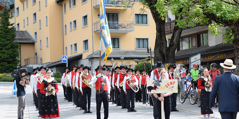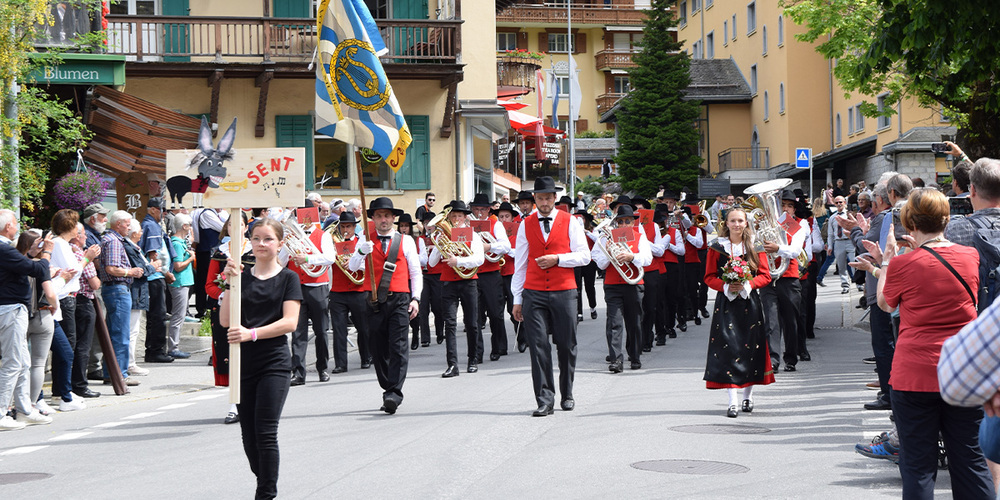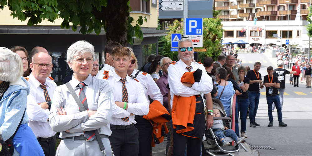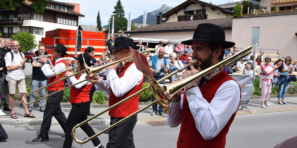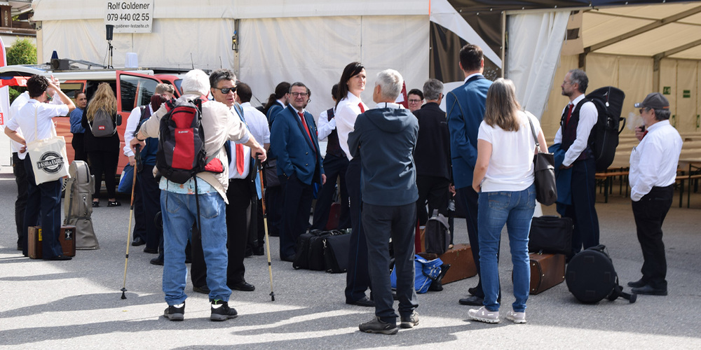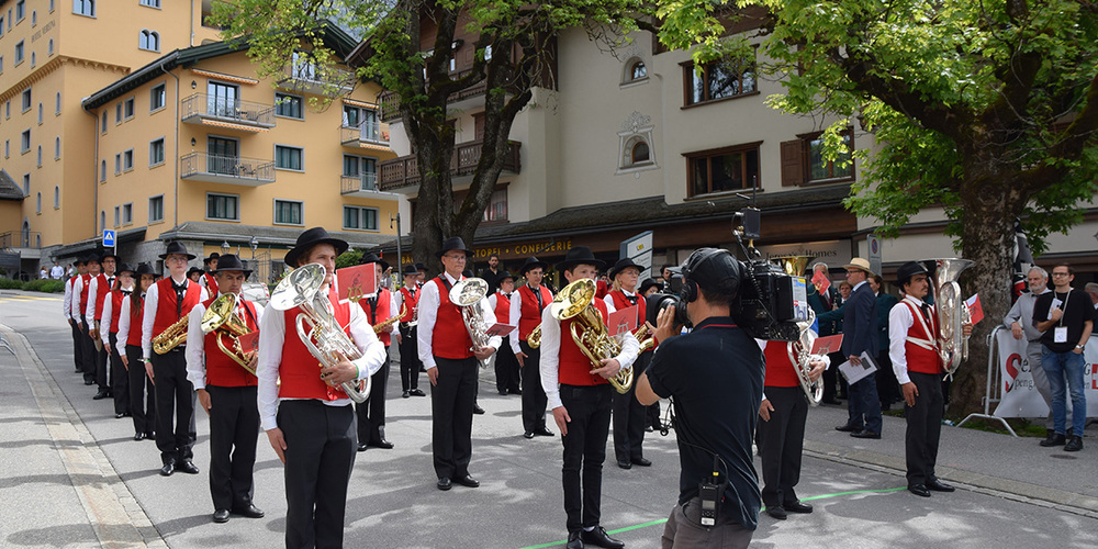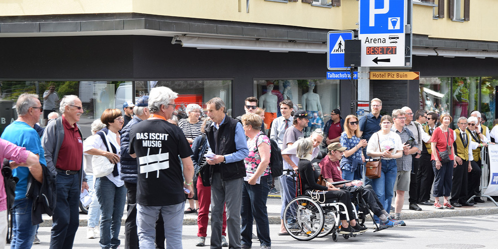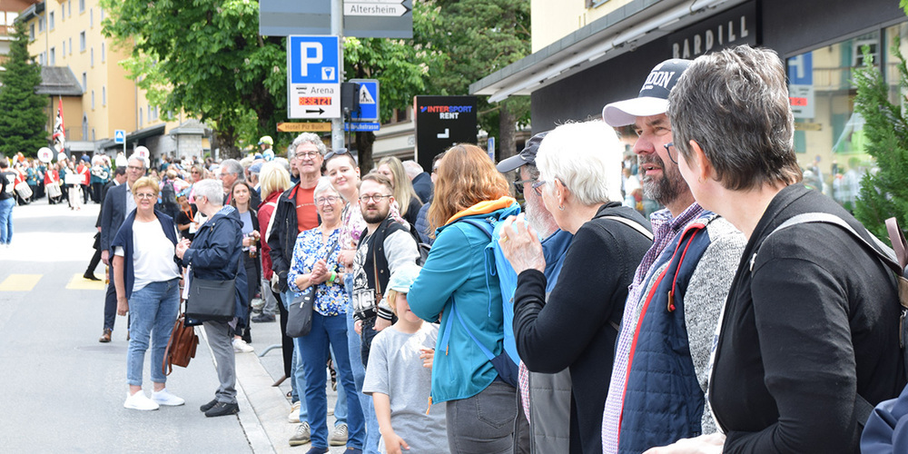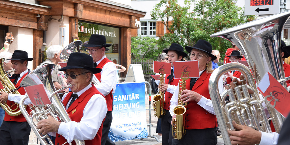Wer am Samstag und Sonntag in Klosters möglichst viele der Programmpunkte erleben wollte, spulte schnell einige Kilometer zu Fuss ab. Im Schulhaus spielten sich die Gastformationen ein, in der Arena gab es bewertete Vorträge, nebenan ein Fotostudio, Veteranen wurden geehrt, im Festzelt traten Formationen und Unterhaltungsmusiken auf, durch das Dorf wurde marschiert und vieles weitere wurde aufgefahren, um den Musikbegeisterten, die in Scharen angereist waren, ein einmaliges Spektakel zu bieten. Und auch wenn praktisch immer irgendwo eine Formation spielte, blieb genügend Zeit zum «Hengern», denn kaum ein kulturinteressierter Mensch aus dem Tal war an diesem Wochenende nicht in Klosters anzutreffen.