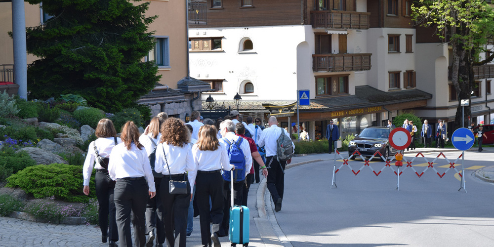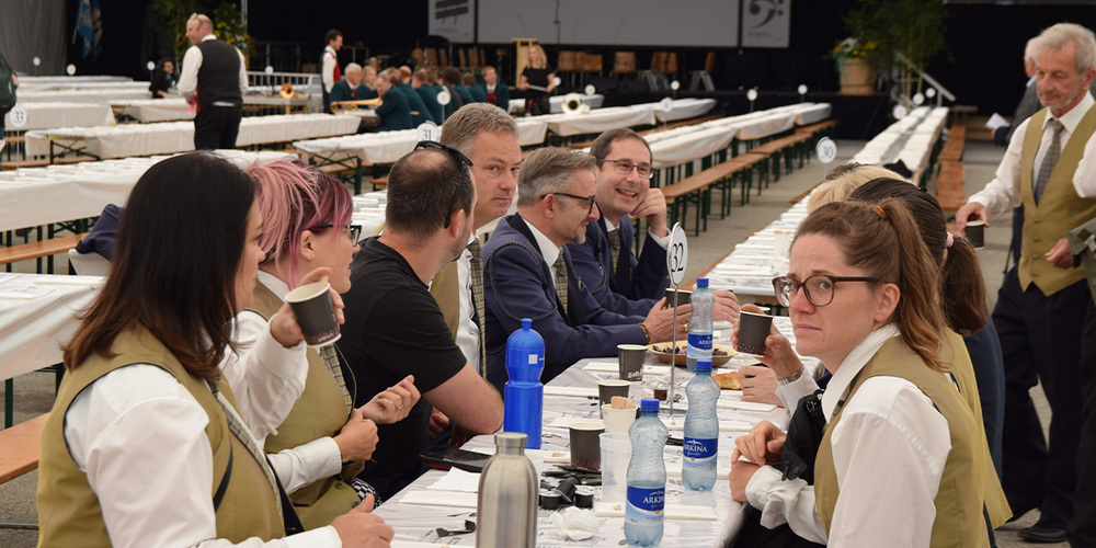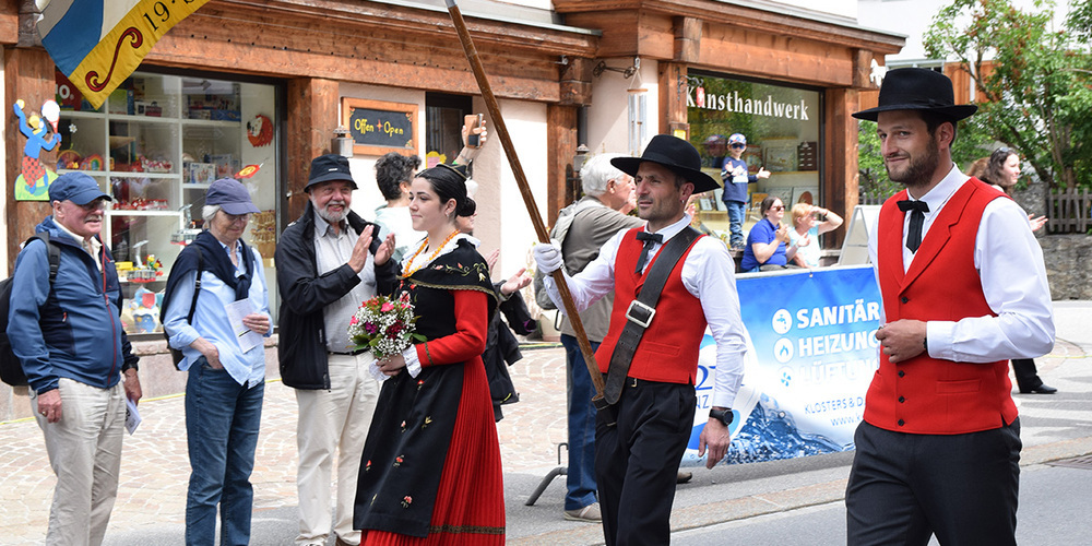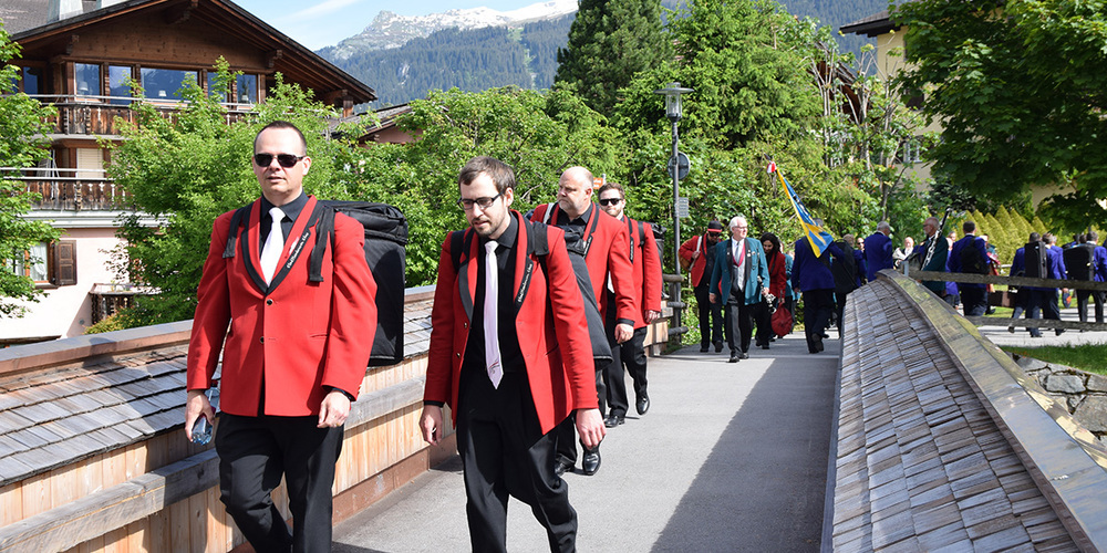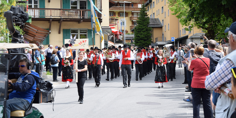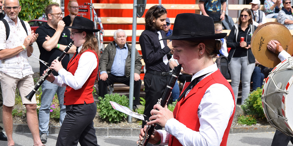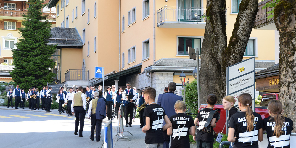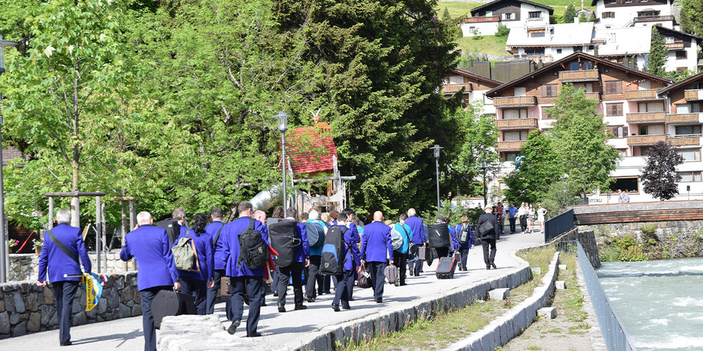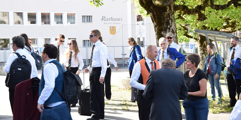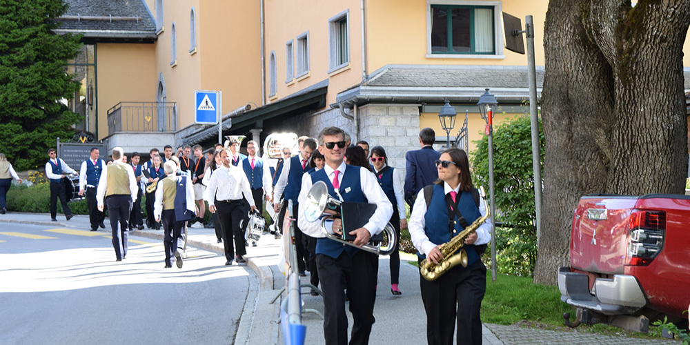Wer am Samstag und Sonntag in Klosters möglichst viele der Programmpunkte erleben wollte, spulte schnell einige Kilometer zu Fuss ab. Im Schulhaus spielten sich die Gastformationen ein, in der Arena gab es bewertete Vorträge, nebenan ein Fotostudio, Veteranen wurden geehrt, im Festzelt traten Formationen und Unterhaltungsmusiken auf, durch das Dorf wurde marschiert und vieles weitere wurde aufgefahren, um den Musikbegeisterten, die in Scharen angereist waren, ein einmaliges Spektakel zu bieten. Und auch wenn praktisch immer irgendwo eine Formation spielte, blieb genügend Zeit zum «Hengern», denn kaum ein kulturinteressierter Mensch aus dem Tal war an diesem Wochenende nicht in Klosters anzutreffen.