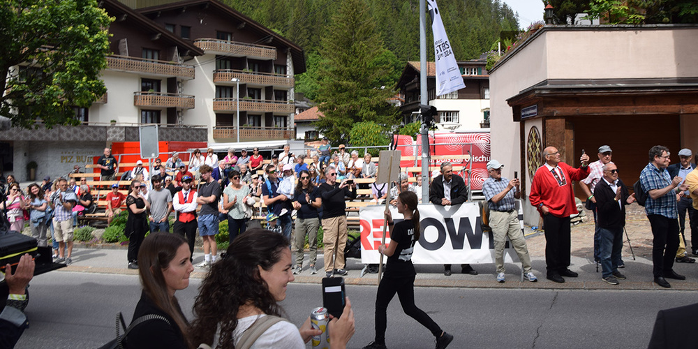 Für alle diejenigen, die aus irgendeinem Grund nicht ins Hinterprättigau pilgern konnten, boten die Organisatoren die Möglichkeit, das Volksfest von zuhause aus mitzuverfolgen. RTR streamte die Auftritte und ein extra für diesen Anlass erstelltes App informierte, wo gerade was am Laufen war. Doch nicht nur das. Zusätzlich wurden dort Geschichten erzählt, die einen Einblick hinter die Kulissen zuliessen. In der Küche, im Fotostudio und auch sonst überall waren rasende Reporterinnen und Reporter im Einsatz und befüllten den Informationskanal. Einmal beispielsweise wurde der Musiker Fadri Schocher nach seinem sechsten Tenuewechsel an diesem Wochenende abgelichtet. Gute Schlagzeuger seien schliesslich gesucht. Hin und wieder ging auch ein Instrument verloren und es konnte durch den direkten Austausch wieder ausfindig gemacht werden. Durch die App konnte das Publikum nicht nur sehen, wie so eine grosse Veranstaltung organisiert wird, sondern auch hin und wieder humorvolle Momente miterleben, wie beispielsweise als die OK-Präsidenten René Sprecher und Peter Marugg ein Tänzchen hinlegten. Man spürte, dass die geplanten Dinge aufzugehen schienen und der Druck von ihnen abfiel.