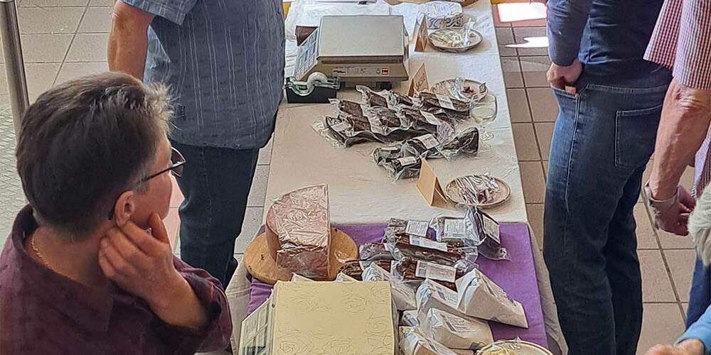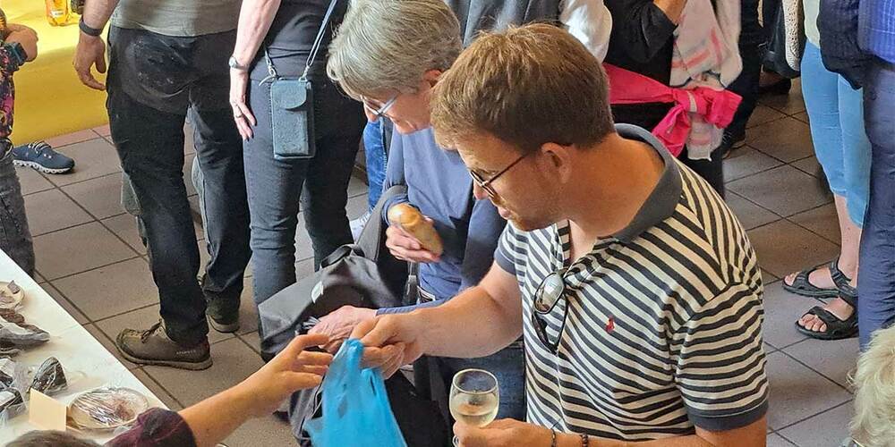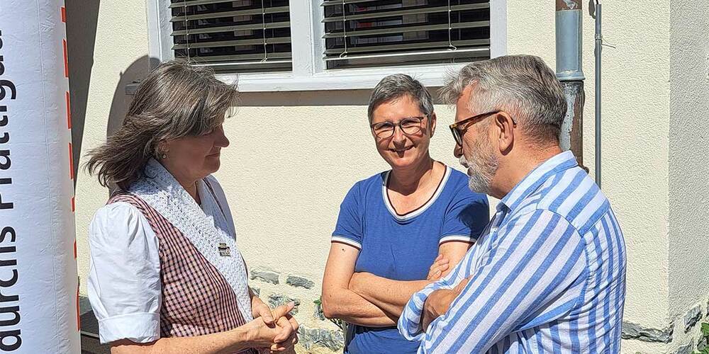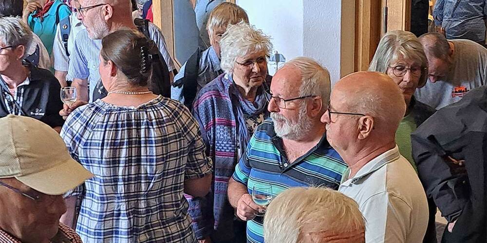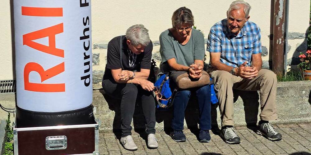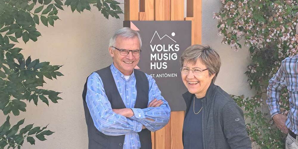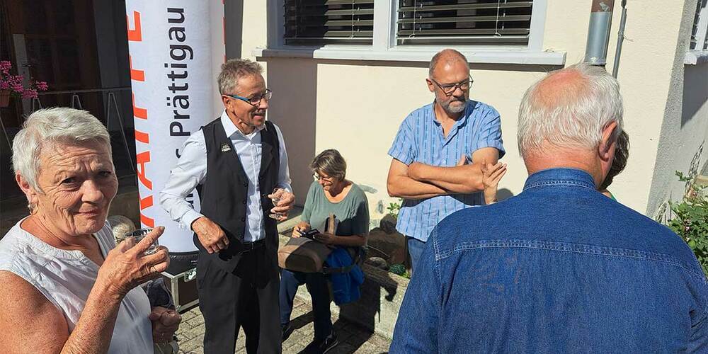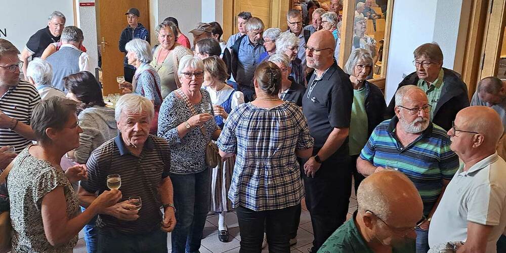 Bei strahlendem Sonnenschein empfing eine imposante Kulisse von siebzehn Alphornbläser:innen auf dem Vorplatz des Volksmusighus die zahlreich anwesenden Gäste und Zuhörenden.