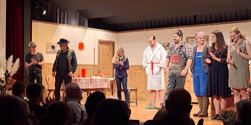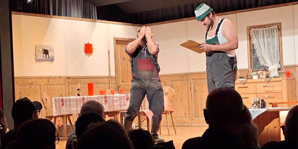 Auch dieses Jahr war das «Konzertlokal» bis auf den letzten Platz gefüllt, was angeblich erst seit einigen Jahren der Fall sei. Umso gelöster war die Stimmung und das traditionelle Theaterstück strapazierte die Lachmuskeln beinahe über Gebühr.