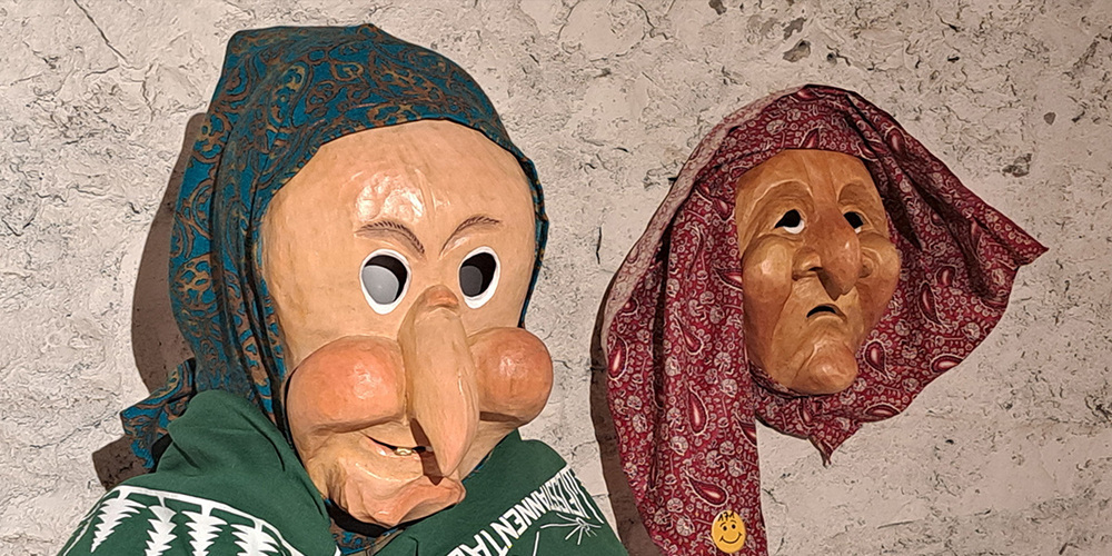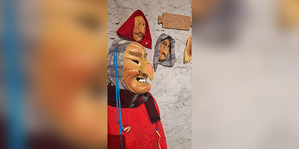 Die Bildkünstlerin Ursi Goetz und ihr Schwiegervater, der Holzmaskenschnitzer Robert Wälti, fanden sich zusammen zur gemeinsamen Ausstellung in der Bündner Herrschaft. Das Schaffen der beiden zierte Wände und Stützbalken des Klostertorkels und zog den Betrachter – ob zwei- oder dreidimensional – in seinen Bann.
