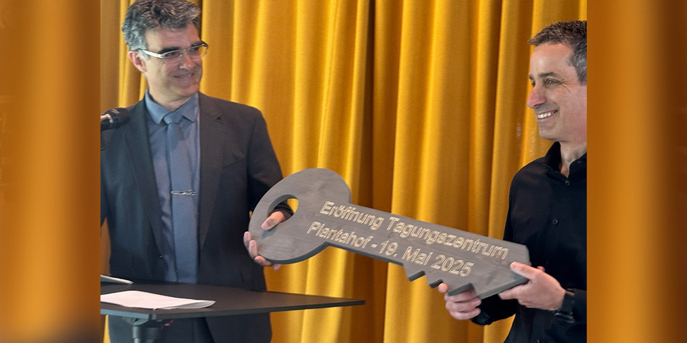 Der Schlüssel ist übergeben: Regierungsrätin Carmelia Maissen und Regierungspräsident Marcus Caduff haben am Montag das neu erstellte Tagungszentrum am Plantahof in Landquart offiziell eröffnet. Die moderne Infrastruktur ist für die Landwirtschaft in Graubünden von grosser Bedeutung. Am kommenden Samstag können Interessierte das neue Tagungszentrum besichtigen.