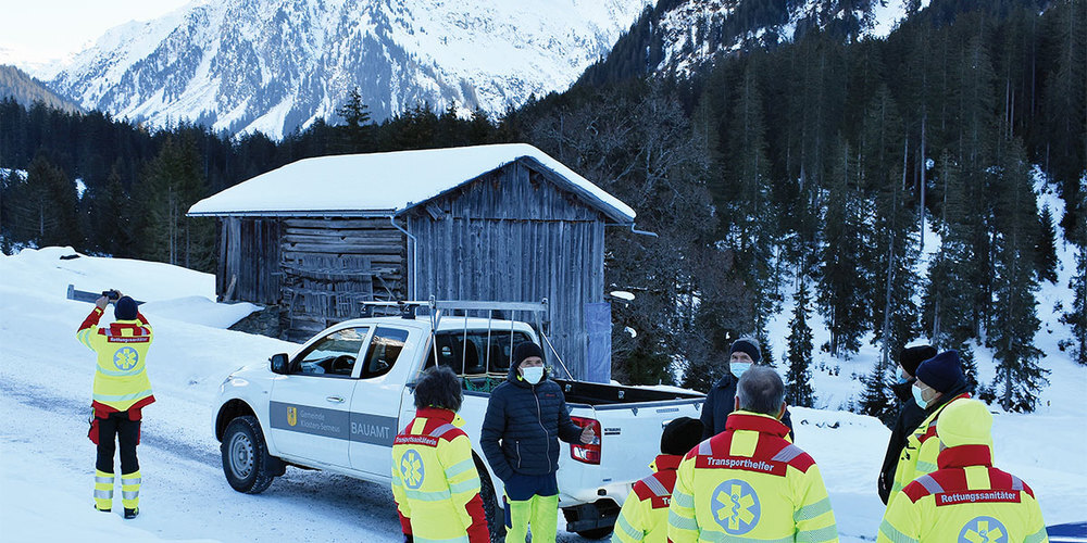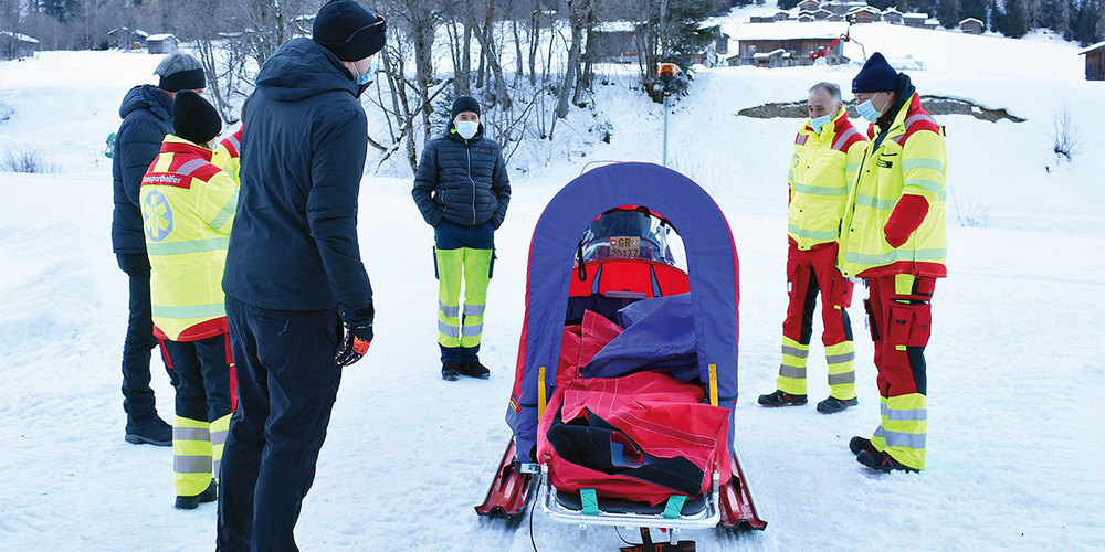 sanitäter, Transportsanitäter und Transporthelfer der Flury Stiftung Schiers in das neue Rettungskonzept «Loipe Klosters» ein. Werner Putzi, Leiter Werkhof, hatte das Rettungskonzept ausgearbeitet.