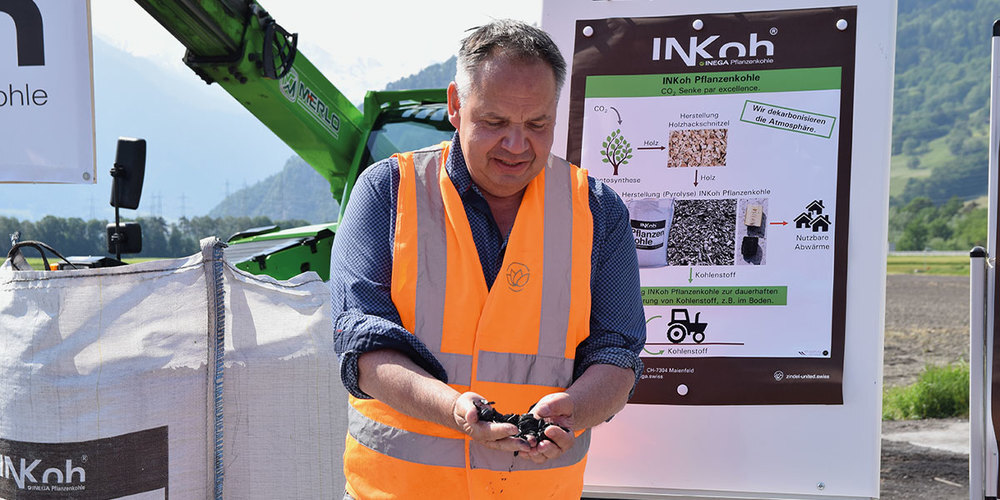 «Es ist der Glaube an unsere Mitarbeiter, das Produkt und an eine intakte Umwelt, die uns motivieren», sagte Inega-Verwaltungsratspräsident Andreas Zindel vor den Medien. «Pflanzenkohle ist ein Allheilmittel und soll dem Klimawandel die Stirn bieten.» Das Produkt, welches unter dem Namen INKoh verkauft wird, bindet CO2. Bäume, Sträucher und weiteres unbehandeltes Holz geben in der Regel das gesammelte CO2 mit dem Verbrennprozess wieder von sich. Wenn dem Rohstoff bei dem sogenannten Pyrolyse-Verfahren der Sauerstoff entzogen wird, und es auf bis zu 1000 Grad aufgeheizt wird, entsteht dabei Pflanzenkohle. Diese zersetzt sich erst in 100 Jahren oder länger und ist darum eine echte Innovation im Bereich der CO2-Bindung.