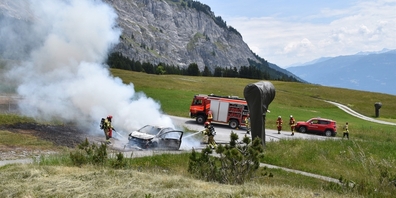 In Flims ist am Montagmittag ein Personenwagen total ausgebrannt. Die Feuerwehr Flims löschte den Brand rasch und verhinderte ein Ausbreiten des Feuers auf das Wiesland.