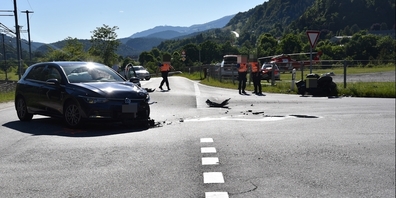 Motorrad und Auto prallen in Domat Ems GR frontal zusammen