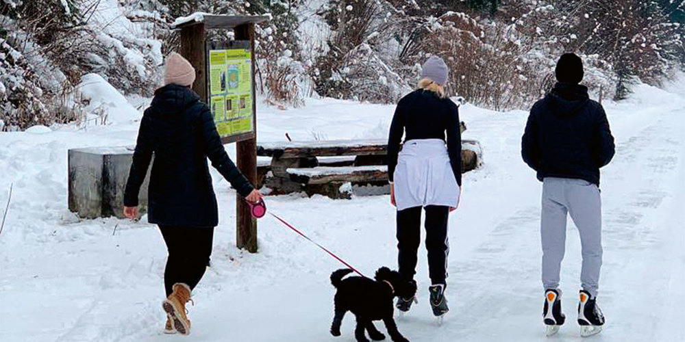 «Die Rückmeldungen auf unser neu geschaffenes Freizeitangebot waren durchwegs positiv», erzählt Andy Vetsch, der bei der Gemeinde Grüsch auch für das Ressort Tourismus verantwortlich zeichnet. «Für die gute Frequentierung des Eiswegs sprechen auch die Rückmeldungen betreffend zahlreicher Schlittschuhvermietungen vom Restaurant ‹Sporti›, das sich in unmittelbarer Nähe der Grüscher Sport- und Bahn-Anlagen befindet.» Diese zeigten klar, dass der Eisweg nicht nur bei der einheimischen Bevölkerung, sondern auch bei Familien in den Ferien und Besitzer:innen von Ferienwohnungen Anklang gefunden habe, freut sich Vetsch, der die Verantwortung für Bau und Unterhalt des Grüscher Eisweges inne hat. «Einerseits wollten wir mit dem neuen Eisweg eine kostenlose Beschäftigungsmöglichkeit für Gross und Klein an der frischen Luft anbieten. Andererseits ist er eine schöne Alternative zum Skifahren», sagt der Mann, der den Eisweg schon selbst gefahren ist. «Der Weg kann vom Kleinkind bis zum Senior gefahren werden, da er flach ist.» Die Stelle, bei der es leicht abwärts gehe, sei aufgeraut worden, damit dort hinunter gegangen werden könne. Wem das Schlittschuhlaufen überhaupt nicht behage, der könne den Rundkurs auch zu Fuss machen, da sich neben dem Eisweg auch ein Spazierweg befinde.