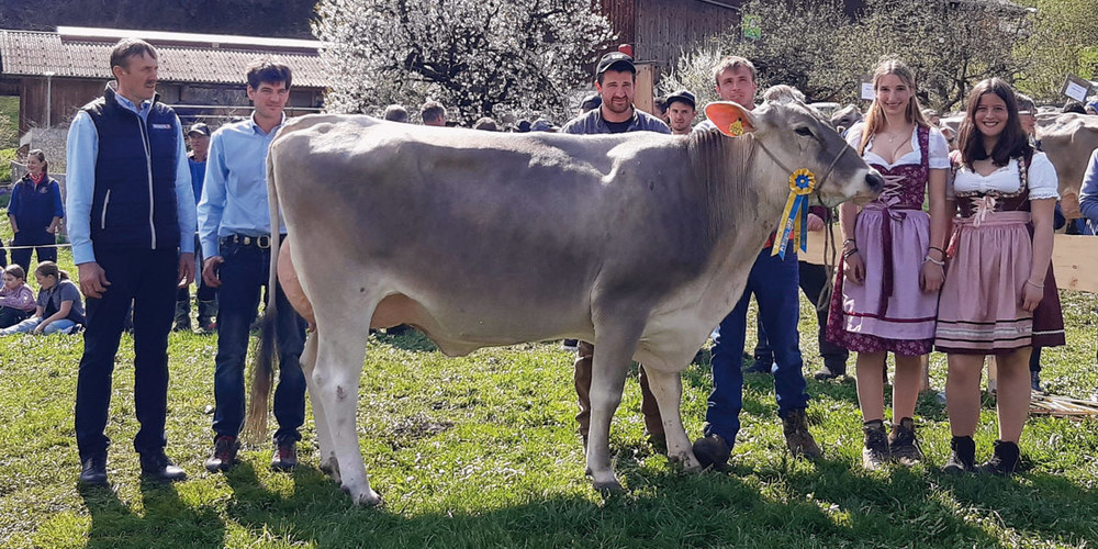 Bei idealen Wetterbedingungen strahlte nur das Vieh mehr als die Frühlingssonne. Eine wahre Augenweide war der Anblick der auf der grünen Wiese eingebundenen Kühe und Rinder. Den beiden Experten Marco Bettini aus Malans und Andi Walser aus Haldenstein wurde es nicht leicht gemacht. Top-Tiere der Rassen Brown Swiss und Original-Braunvieh präsentierten sich in den beiden Schauringen. In der ersten Abteilung der Mesen siegte die Capucino-Tochter SANGRIA von Georg Florin aus Serneus, die am frühen Nachmittag zum Rinder-Champion gekürt wurde, gefolgt von SAMBA einer Silverstar-Tochter aus dem Stall von Emil Giger ebenfalls aus Serneus und Grischa von Ambrosi Flütsch aus St. Antönien. Bei einer weiteren Abteilung Mesen triumphierte Bernhard Bärtsch aus Furna mit einer Blooming-ET Tochter PERITA vor PATTY von Thomas Roffler aus Grüsch und AMDELIA von Hanspeter Berry, ebenfalls aus Grüsch. TIMORA und VALERIE, zwei Lennox-Töchter, beide aus dem Betrieb von Thomas Roffler, überzeugten die Experten bei den trächtigen Rindern und wurden von diesen auf Rang 1 und 3 platziert. Auf Rang 2 schaffte es JOXA von Bernhard Bärtsch. Ein weiterer Sieg einer Lennox-Tochter ging an LEIKA von Hans Hartmann aus Pusserein, gefolgt von HELENE aus dem Betrieb von Hanspeter Berry und einer weiteren Lennox-Tochter LEONI von Thomy Maier aus Pany.