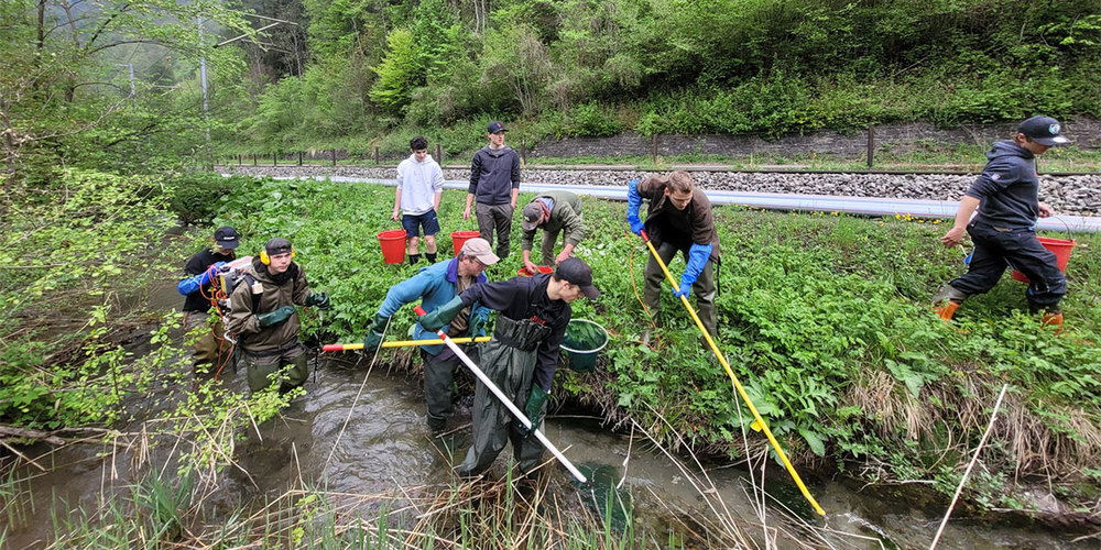 Rund 1000 ein- und mehrjährige Fische konnten entnommen werden und in den umliegenden Bächen zum Erhalt der Fischbestände wieder ausgesetzt werden.