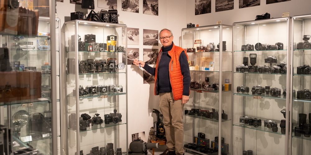Foto Flury wurde als «Geschäft für Hochgebirgsfotografie» im Jahr 1863 durch Alexander Flury gegründet. Flury, geboren 1825 in Saas im Prättigau und Bürger von Conters, dürfte um Mitte 1850 ins Oberengadin gezogen sein, wo er sich als Fotograf und Bergführer betätigte und als Erstbesteiger des Piz Palü, aber auch der La Sella berühmt wurde. An der heutigen Via Maistra 137 in Pontresina erbaute er ein Holzchalet für sein Fotogeschäft mit dazugehörendem Fotostudio. Über 100 seiner Bergführer-Kollegen liessen sich über die Jahre in seinem Studio ablichten, auf Glasplatten bannen mit einer der beiden hölzernen Kameras, zwischen denen das Ehepaar Lochau für das Digitalfoto Platz nahm. Der Keller, in dem die beiden uralten Studiokameras ausgestellt sind, ist Teil des Fotomuseums von Foto Flury, durch welches Alfred Lochau Interessierte seit 20 Jahren gerne geführt hat. Das Fotomuseum soll trotz der Schliessung von Foto Flury erhalten bleiben. Weit über 100 Kameramodelle samt Zubehör, von den Anfängen der Fotografie mit Silber-Halogenid beschichteten Glasplatten bis zur digitalen Technik sind in Vitrinen ausgestellt und zeigen die Entwicklung der Fotografie. Lochau hat vieles davon auf dem Dachboden gefunden, dazu vieles von Freunden und Bekannten erhalten. «Gekauft habe ich nichts», betont er.