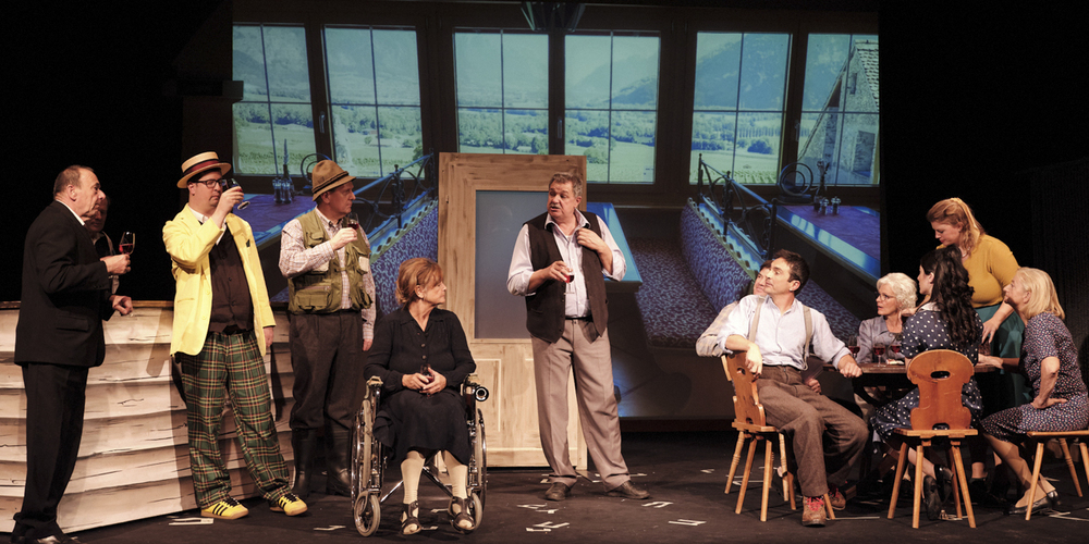 Die sehr kurzweilige Geschichte «Lottofieber» porträtiert die grossen Träume der kleinen Leute und lässt zwischen den Zeilen eine wunderbare Tiefgründigkeit vernehmen. Zum Beispiel die Dialoge zwischen dem Mädchen Debbie (Sereina Fuchs) und dem Dorfpfarrer (Martin Krummen) sind eindrücklich zu Papier gebracht und es ist schon recht amüsant zu sehen, wie philosophisch die 12-Jährige ihren Gedanken Ausdruck verleiht, obwohl dies doch eigentlich eher der Beruf von ihrem geistlichen Kollegen ist. Im Allgemeinen sind es die Duokonstellationen, die in diesem Stück bestechend sind und einem hin und wieder hinterfragen lassen, ob hier wirklich nur Laiendarsteller: innen am Werk sind. Die Freunde Charly und Willy erinnerten mich hin und wieder an eine Mischung aus Laurel und Hardy oder an die beiden Protagonisten aus «Dumm und Dümmer». Die ungeheure Chemie auf der Bühne und ein wahres Pointen-Feuerwerk liessen darauf hoffen, dass die beiden Figuren sich doch bitte nochmals ein Gläschen Rotwein zu Gemüte führen mögen, da es in solchen Momenten gleich nochmals einen Zacken witziger wurde. Neben der philosophischen und der humorvollen Paarung gab es eine Kombination, welche es schaffte, die Mehrzweckhalle Jenins mit Romantik zu füllen: Der Schweinehirt (Andreas Heldstab) und die alleinerziehende Mutter Maria (Valentina Parolini). Dem Werben um seine Traumfrau stand einzig der Schweinegeruch im Weg. Doch dank ein paar Fruchtseifen sah die Welt schon wieder anders aus und anhand ihrer Geschichte wird dem Publikum bei diesem Stück die wichtige Botschaft mit auf den Weg gegeben, dass eine glückliche Familie eben doch mehr Wert ist, als grosser Reichtum.