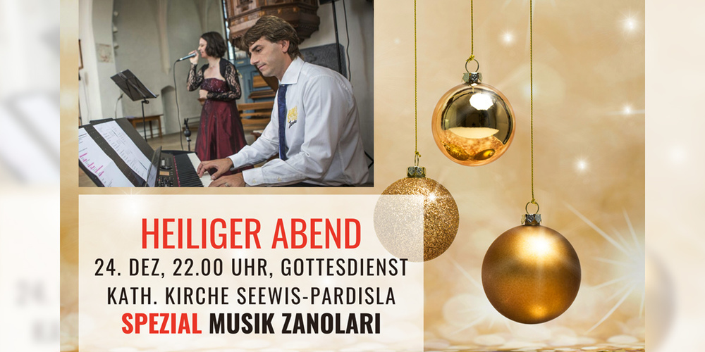 Am 24. Dezember um 22 Uhr sind alle herzlich zum Gottesdienst zu Heilig Abend eingeladen. Der feierliche Gottesdienst wird von der Band Zanolari (Evelyne Hess, Gimmi und Loris Zanolari) musikalisch umrahmt. Am Sonntag, 25. Dezember findet um 10 Uhr eine Eucharistie in der katholischen Kirche Schiers statt. Die katholische Pfarrei Vorder- und Mittelprättigau wünscht allen Prättigauerinnen und Prättigauern gesegnete Weihnachten.
