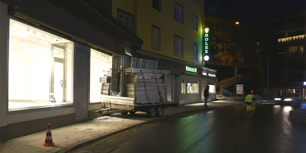 Am Mittwoch hat sich auf der Promenade in Davos Platz ein Anhänger von einem Lieferwagen gelöst. Er überquerte ein Trottoir und kollidierte mit einer Hausfassade.