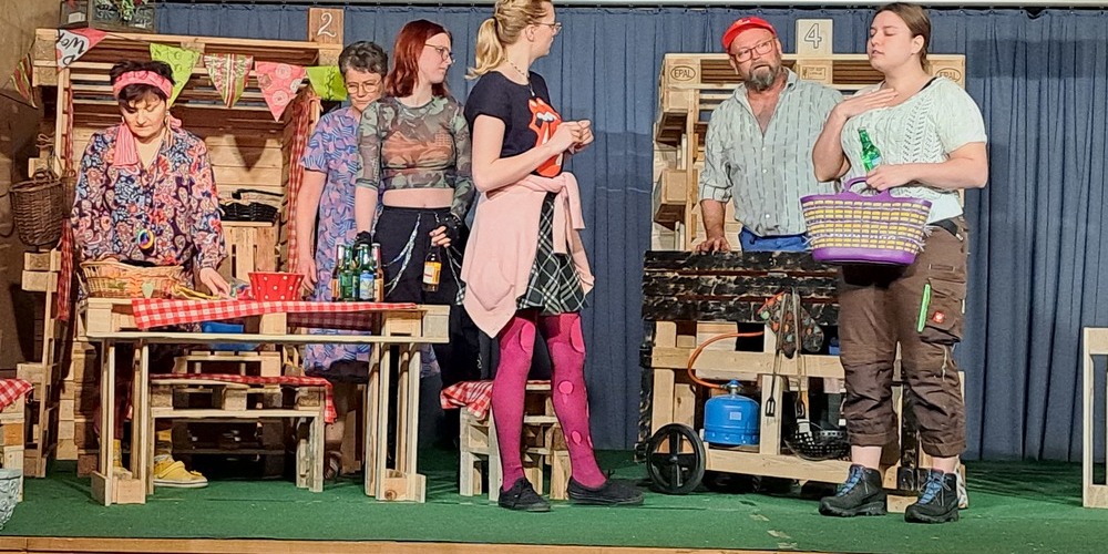 Unter der Co-Regie von Tina Ritter und Yvonne Reinstadler wird ein Stück aus der Feder von Beatrice Lanz eingeübt: «Zoff im Paradies». Über den Inhalt des Stücks möchte ich an dieser Stelle gar nicht viel verraten, da es sich lohnt, eine der sechs geplanten Vorstellungen zu besuchen und selbst mitzuerleben was sich so alles in und um ein Schrebergartenareal abspielt.