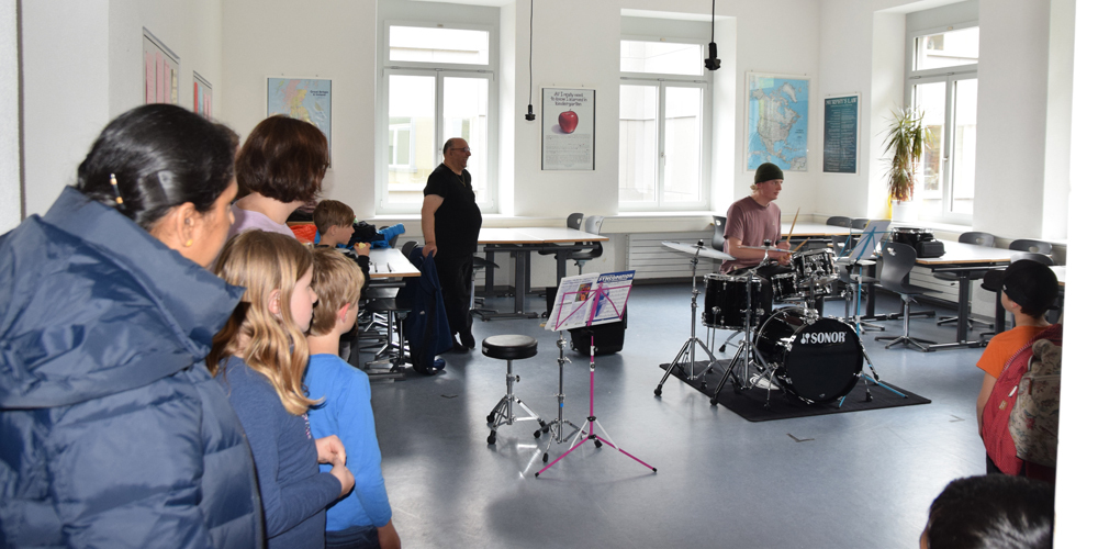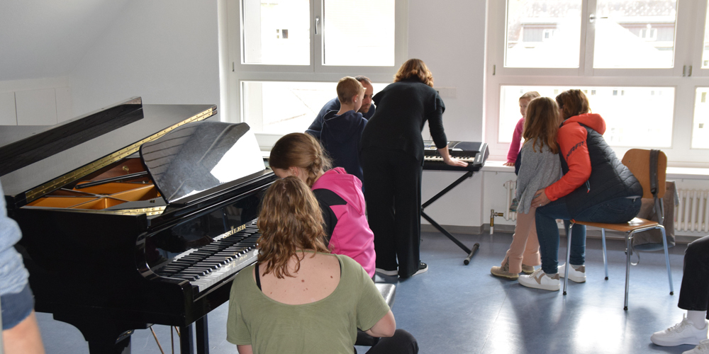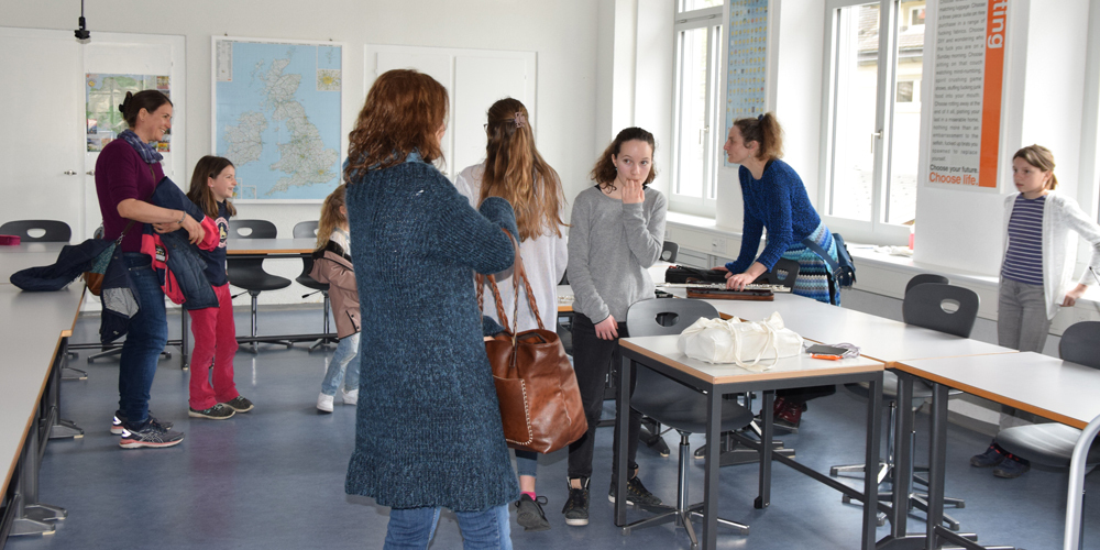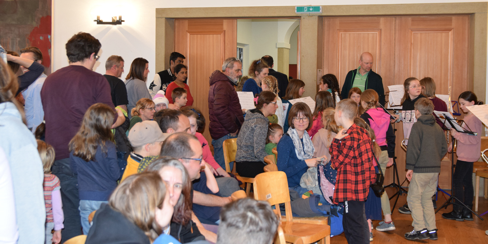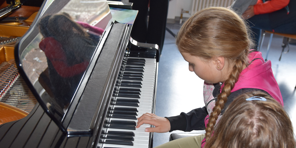 Am Samstag, 15. April fand endlich wieder mal ein «erlebnistag musik» der Musikschule Prättigau statt. Als Start wurde in der Aula der EMS zusammen musiziert und zugleich aufgezeigt, welche Möglichkeiten einem beim Erlernen eines Instruments offen stehen. Anschliessend gab es an dem stark frequentierten Schnuppertag in den Klassenzimmern der Evangelischen Mittelschule die Option unterschiedliche Instrumente selber auszuprobieren.