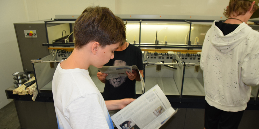 Kürzlich besuchten die Schülerinnen und Schüler der sechsten Klasse Schiers die Druckerei Landquart. Dabei konnten die Jugendlichen einen Einblick in den Druckereialltag gewinnen sowie auch der den Polygrafen und der Redaktion bei ihrer Arbeit zusehen. Bei der anschliessenden Fragerunde im Büro von Remo Thöny wurde klar, dass die jungen Persönlichkeiten durchaus noch Interesse an gedruckten Zeitungen und deren Entstehung haben. Vielleicht hat sich bei einzelnen Personen an dem Tag ausserhalb des Klassenzimmers zudem auch eine neue Zukunftsperspektive aufgetan, was wirklich schön wäre.