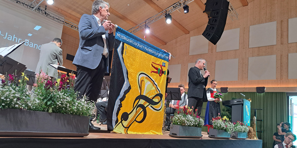 Am 24. und 25. Juni 2023 stand Klosters ganz im Zeichen der Blasmusik. Neben den Festlichkeiten zum 100-jährigen Bestehen der Musikgesellschaft Madrisa, fand auch ein Bezirksmusikfest für die Vereine aus dem Musikbezirk II Prättigau, Davos, Herrschaft und fünf Dörfer statt.