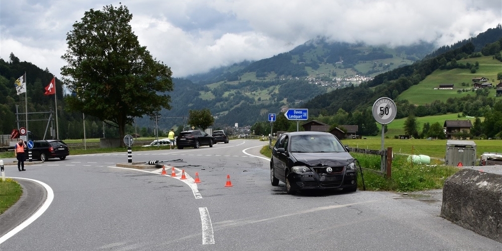 Der 58-jährige Deutsche bog am Donnerstag um 12.10 Uhr, von Landquart kommend, von der Nationalstrasse N28 in die Verzweigung Ascherapark ab. Dabei geriet sein Auto nach links, kollidierte mit einer Verkehrsinsel und einem Auto aus der Gegenrichtung, gelenkt von einem 32-jährigen Schweizer. Ein Team des Rettungsdienstes Schiers transportierte den Mann zu medizinischen Abklärungen ins Spital. Die Kantonspolizei Graubünden klärt den genauen Unfallhergang ab.