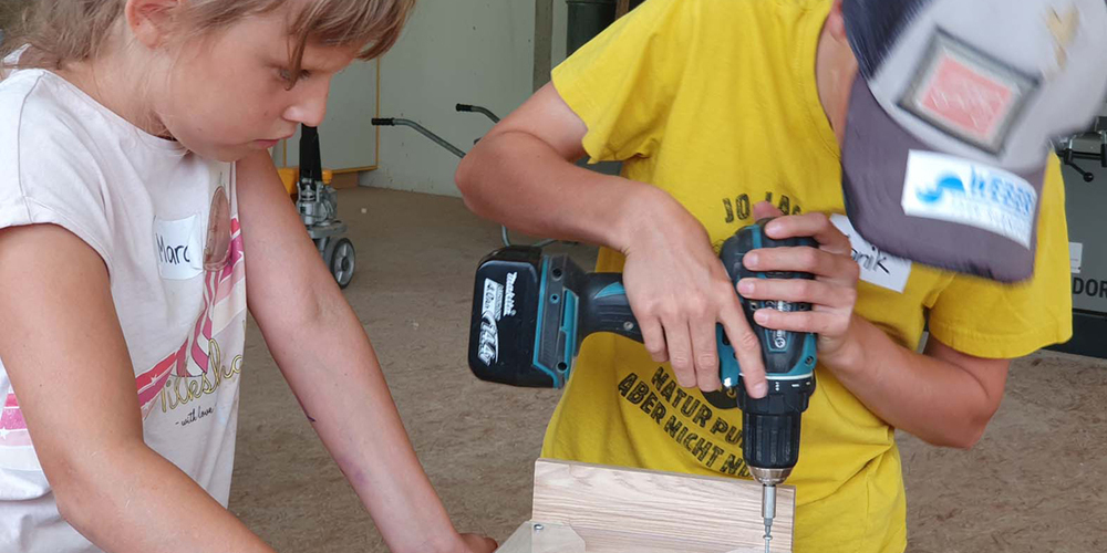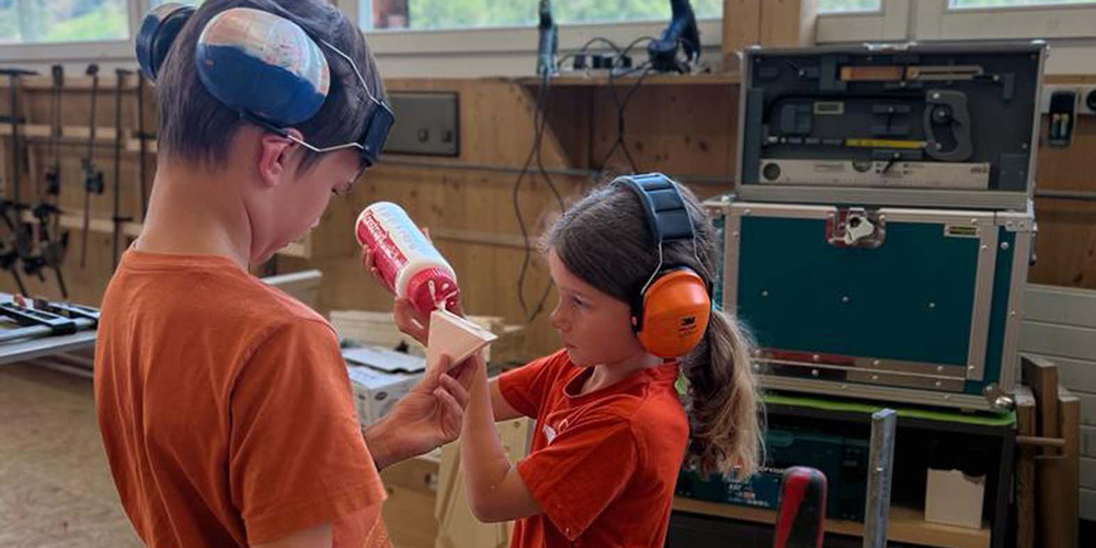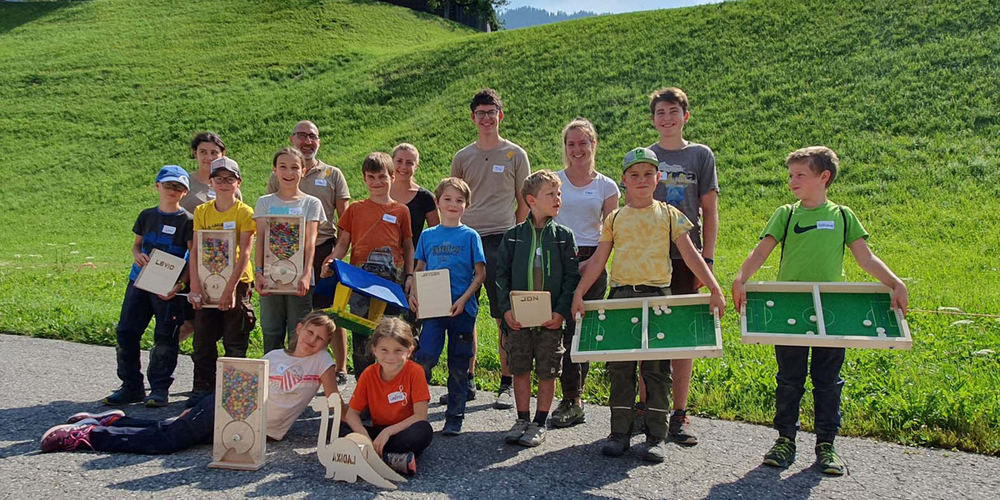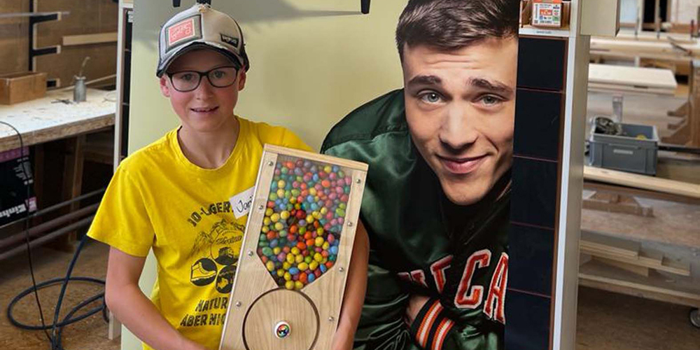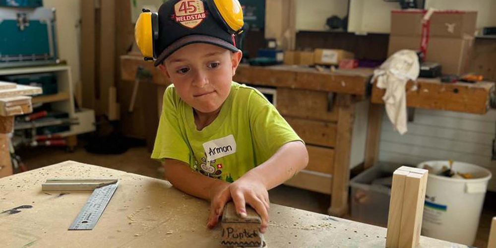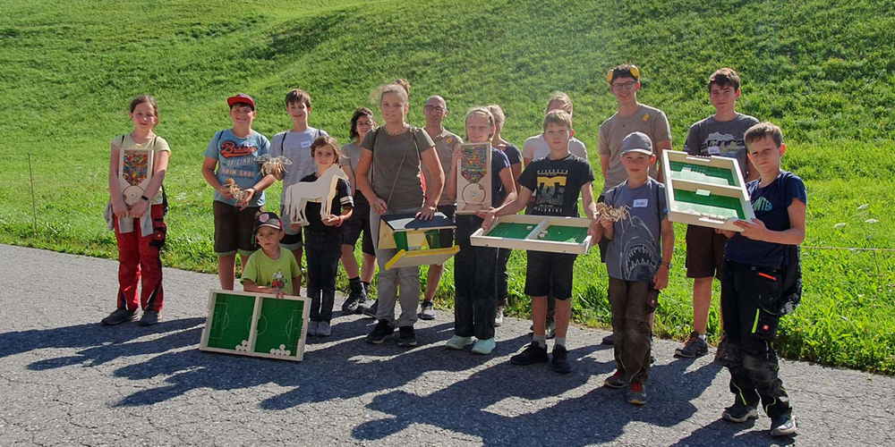 «Heb Holz!», sagt der Prättigauer, wenn ihn das Glück nicht verlassen soll. Unter diesem Motto durften während drei Tagen je 10 Kinder einen Tag in der Schreinerei verbringen. Die Firma Bardill Holz AG überliess es nicht dem Glück, dass am Abend fröhliche Kindergesichter entlassen werden konnten. Es wurde gesägt, geschliffen, gebohrt und verleimt, aber auch gelacht und gespielt. Entstanden sind bunte und persönliche Werke – vom Vogelhäuschen, Fingerfussball, Balanceboard bis zur Süssigkeiten-Maschine, für jede:n hatte es etwas Passendes dabei. Wie flink die Kinderhände waren und wie motiviert die Schüler:innen arbeiteten, zeigten die Resultate, die sie am Abend mit nach Hause nehmen durften. Und wenn am Ende die involvierten Arbeiter:innen glücklich sind und die Eltern so dankbar reagieren, darf man wohl behaupten, dass es am fehlenden Interesse der Kinder nicht liegen kann.
