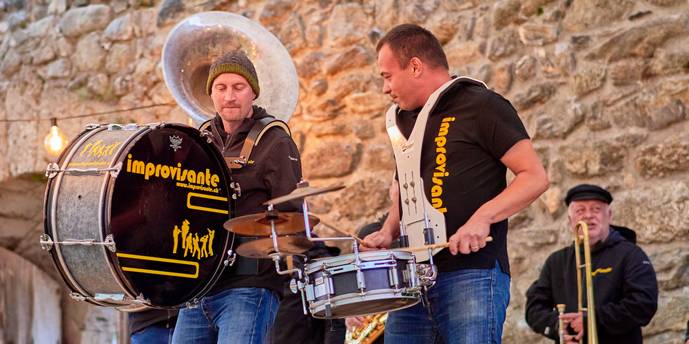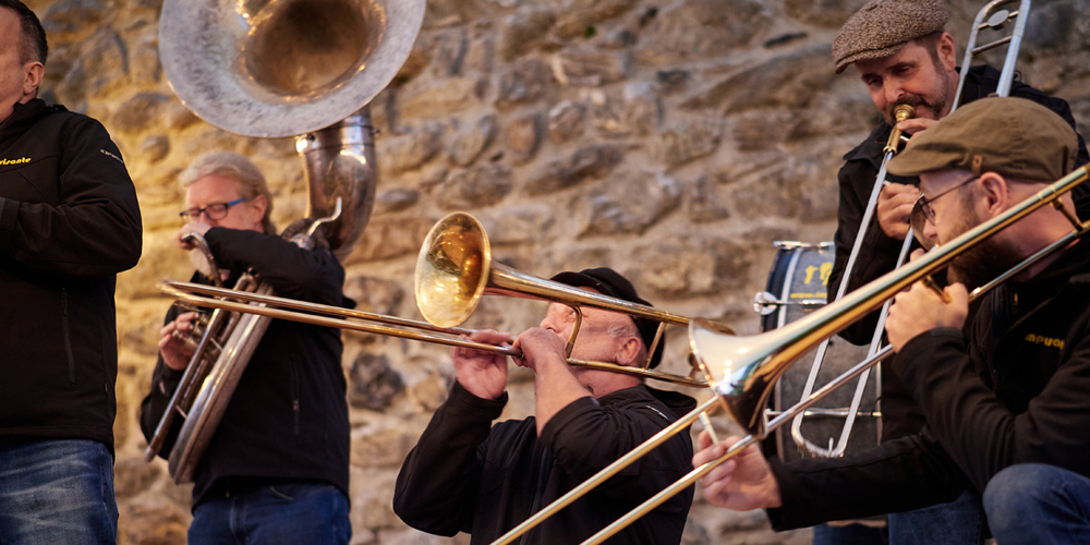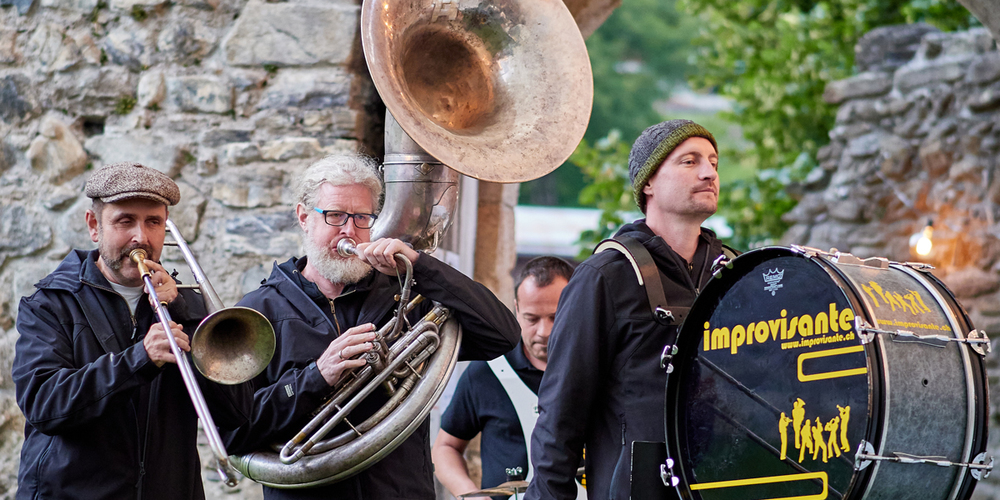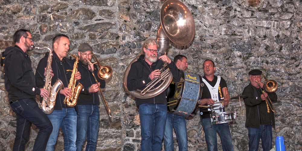 Die Band verstand es, das zahlenmässig überschaubare Publikum, trotz nicht hochsommerlicher Temperaturen, durch ein hochstehendes, abwechslungsreiches Streetband-Konzert, mit vielen gekonnten Soloeinlagen und launiger Unterhaltung, zu begeistern. Es gelang den Musikern, die Gäste zu beeindrucken, ohne jegliche elektronische Verstärkungstechnik. Wohl gemerkt, einfach mit ihren Instrumenten, ihrem Können und ihrer Stimmung. Das unvergleichliche Ambiente, durch schlichte, aber effektvolle Beleuchtung geschickt untermalt, ist immer wieder beeindruckend.