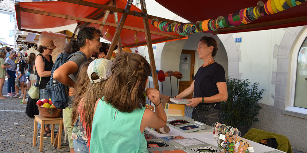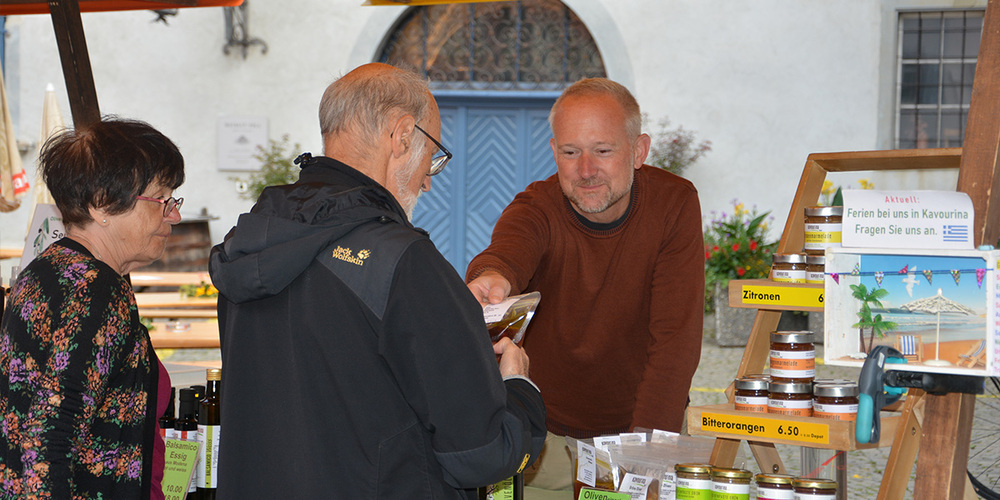Der Städtlimarkt in Maienfeld erfreut sich jedes Jahr grosser Beliebtheit. Am Samstag, 16. September hat auch das traumhafte Herbstwetter zur guten Stimmung und zu den vielen Besucherinnen und Besuchern beigetragen. An rund 20 Marktständen wurden lokale Produkte angeboten wie Maienfelder Alpkäse, Selbstgebackenes von den Bäuerinnen und Landfrauen, Fleisch und Wurstwaren von Lamas aus Fläsch oder vom Wagyiu-Rind aus Maienfeld, Gestricktes und Gefilztes, Genähtes aus Kaninchenfell, Holzschnitzereien, Pralinen, Olivenöl, Edelsteine, Arvenkissen, Schmuck oder Schellen- Ursli-Bettwäsche. Für Speis und Trank sorgten die vielen Helferinnen und Helfer der Festwirtschaft. Bereichert wurde der Anlass im Städtli mit den Schellnern der Knabenschaft Maienfeld und der Musikgesellschaft Maienfeld. Organisiert haben den schönen Anlass in einmaliger Kulisse der Weinbauverein Maienfeld und der Bäuerinnen- und Landfrauenverein.