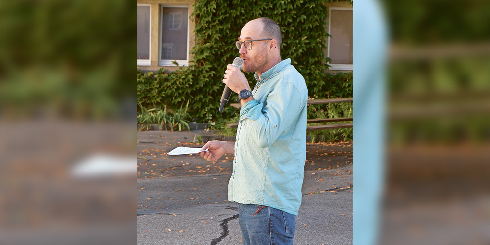 Vor der Klimawand im Eingangsbereich der Schule wies der Schuldirektor, Hans-Andrea Tarnutzer, auf bisherige Projekte, insbesondere aber auf das Wesentliche von «2100 Klimakademie» hin. Mit diesem Programm sorgt die EMS Schiers dafür, dass die Mitarbeitenden und Schüler:innen gesund und leistungsfähig bleiben. Gleichzeitig befähigt sie diese, Einfluss auf eine nachhaltige Entwicklung zu nehmen. Zudem sollen laufend verschiedene neue Elemente den Schulalltag bereichern und hin zu einem umweltgerechten Umgang mit der Natur und Ressourcen führen. Aktuell bietet die Bibliothek gezielt Medien und Bücher zum Thema an, zum neu geschaffenen Vegi-Mittwoch in der Mensa sollen vermehrt vegetarische Angebote hinzukommen, die Ballkiste auf dem Schulhof soll zu sportlicher Tätigkeit und Bewegung animieren und schliesslich wurde auf dem Schulareal neu auch eine E-Bike-Ladestation eingerichtet. Stefanie Bachmann vom Amt für Gesundheit Graubündenbetonte wie wichtig es sei, dass die Schulen in diesen Projekten eigenverantwortlich handeln, bei neuen Aufgaben und Vorhaben aber immer wieder auf die Unterstützung der kantonalen Amtsstellen zurückgreifen können. Nach dem symbolischen Durchschneiden des roten Bandes blieb noch der Hinweis auf die Podiumsdiskussion zu Umweltthemen von verschiedenen Jungpolitiker:innen aller Parteifarben in der Mittagspause und auf das Yoga-Angebot in der Turnhalle.