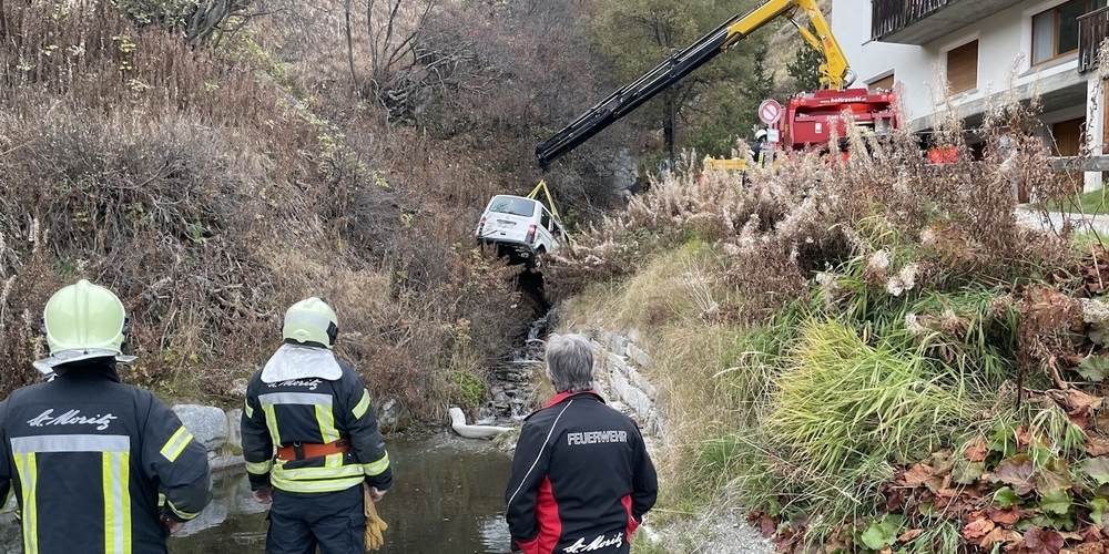 Am Dienstag ist in St. Moritz ein Automobilist von einer Nebenstrasse abgekommen. Sein Fahrzeug kam in einem Bach zum Stillstand.
