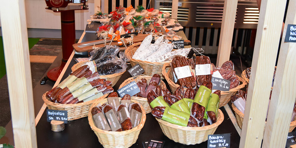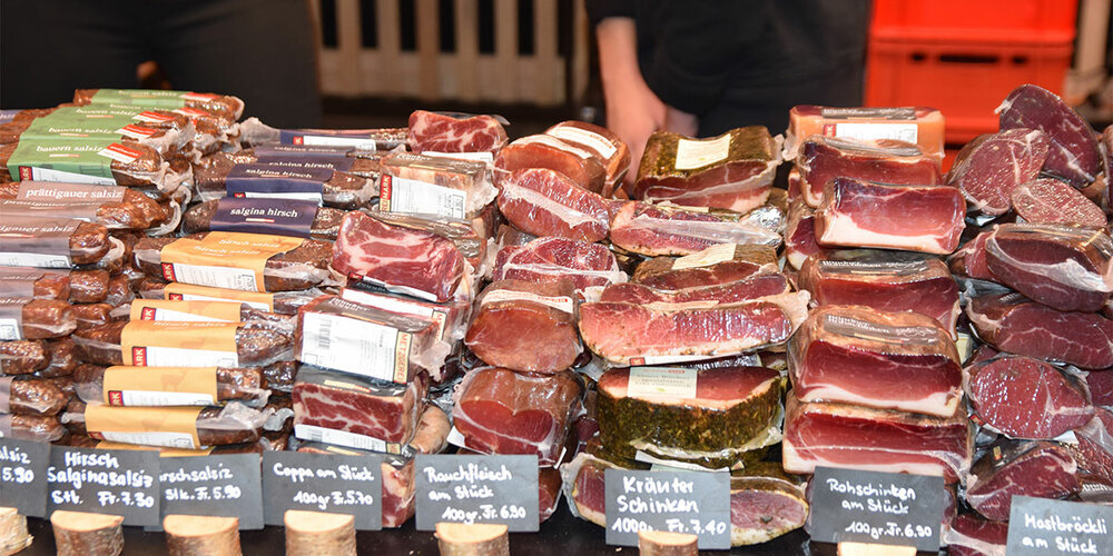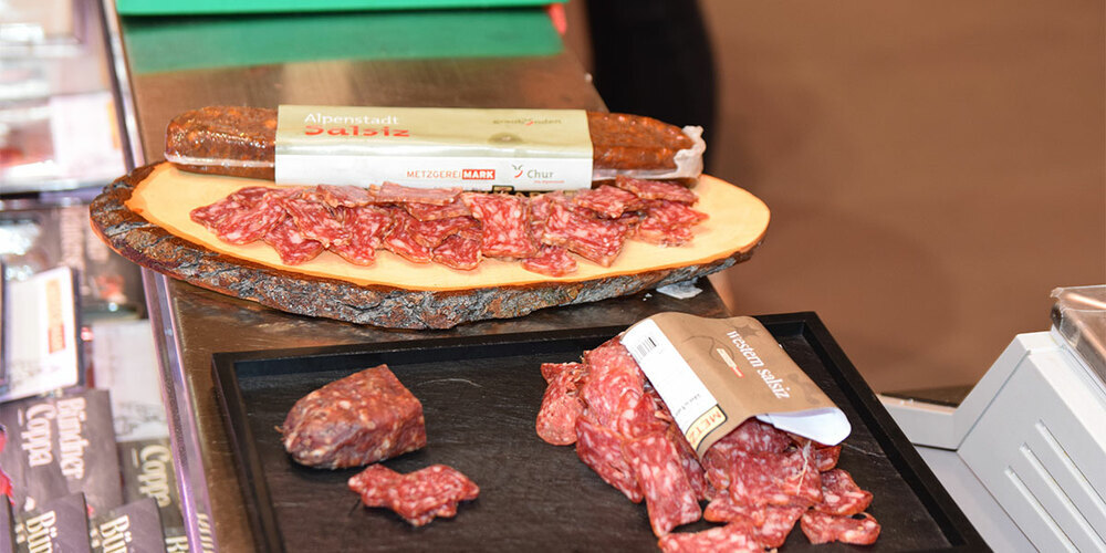 «Das physische Zusammenkommen und Netzwerken ist nach den Pandemiejahren wichtig», sagt Martin Renner. «Zusammenkommen zum Thema Genuss ist für die Branche selbst und für die Konsumenten:innen wichtig und wir merken, dass ein reger Austausch stattfindet und die Produkte einen guten Absatz finden.» Ebenfalls am Genussmarkt mit von der Partie ist die Metzgerei Mark aus dem Lunden. Priska Rothenberger ist sehr zufrieden mit den positiven Reaktionen, die der Genussmarkt auch für sie einbringt. «Wir lernen hier sicher viel neue Kundschaft kennen und auch andere Geschäfte, bei denen wir sehen können, was die das handhaben.» Am besten kommt beim Fleischbetrieb, der kürzlich Jubiläum gefeiert hat, der Salsiz an- «Der klassische Bauernsalsiz oder auch der an der luftgetrocknete Prättigauer Salsiz werden hier an der Olma sehr oft gekauft.» Wie die Metzgerei Mark ist auch der Weinbauer Jürg Hartmann im vergangenen Jahr mit dem Gastkanton an der Olma gewesen und und hat sich sehr gefreut, als die Alpinavera sich für den Auftritt am Genussmarkt entschieden hätten und er dabei sein könne. Der Austausch bringe viele Vorteile. «Wir sind eine kleine Region, die sehr gute Sachen hat. Man darf sich durchaus zeigen als Gemeinschaft und auch bei uns gehört eine Käse- oder Fleischplatte bei einer Degustation dazu und dann schaut man, dass man regionale Produkte hat, welche die Wertschöpfung in der Region behalten.