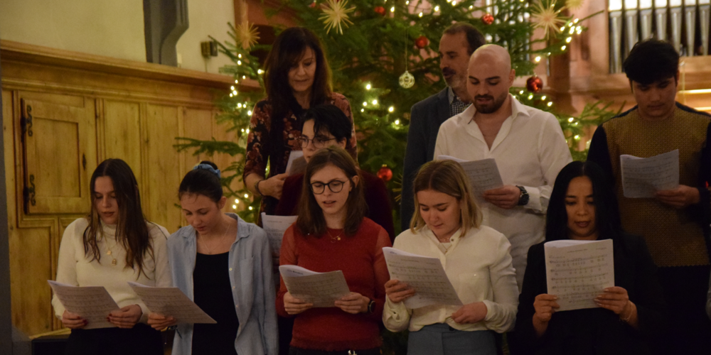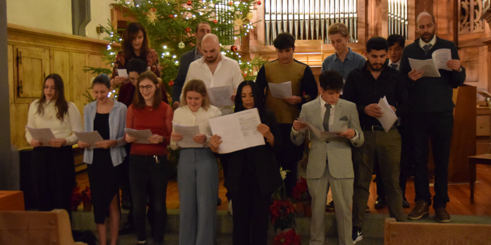 Das Bildungszentrum Palottis lud am vergangenen Donnerstag die Schülerinnen und Schüler zu einer Weihnachtsfeier in die reformierte Kirche Schiers ein. Da die Feier ein besonderer Anlass war, kamen alle Jugendlichen in festlicher Kleidung und es gab sogar die Möglichkeit, traditionelle Kleidung aus anderen Ländern zu bestaunen, die man so nicht jeden Tag im Prättigau sieht.