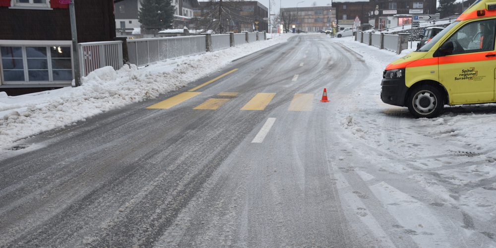 Sedrun: Fahrzeug rutscht gegen Mann auf Fussgängerstreifen