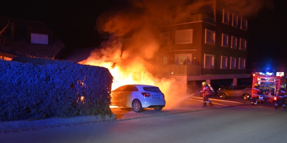 Um sein Auto am Donnerstag nach 19.10 Uhr in Trimmis in der Garagenbox zu parkieren, liess ein Junglenker seinen Beifahrer aussteigen, um das Garagentor zu öffnen. Dieser nahm Rauchgeruch aus dem Motorraum wahr und teilte das seinem Kollegen mit. Dieser stieg aus, wonach die beiden bereits Flammen im Motorraum sahen. Die alarmierte Feuerwehr Calanda löschte den Brand. Am Fahrzeug entstand Totalschaden und an der nahen Gebäudefassade sowie am Garagentor ein Sachschaden von mehreren tausend Franken.