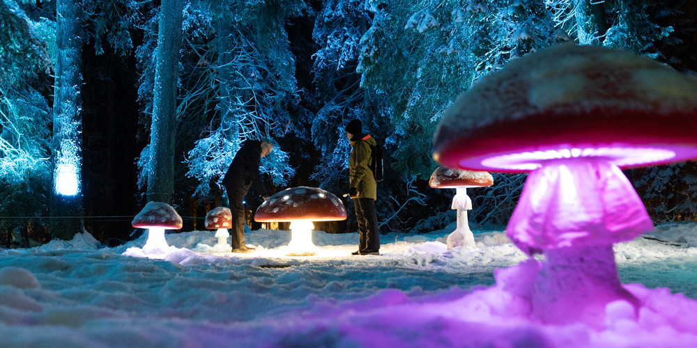 Es ist eine interaktive Installation mit Zauberpilzen. Bei den Zauberpilzen denken wir jetzt aber ausnahmsweise mal nicht an den Magen. Sie sind aus Kunststoff und können betatscht werden. Wir haben so viele Lampen und Effekte verbaut, wie noch nie. Mehr möchten wir aber nicht verraten.