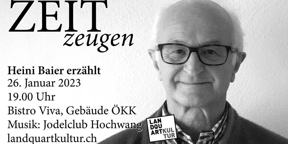 Am Freitrag, 26. Januar 2024 findet um 19.00 Uhr im Bistro Viva des ÖKK-Gebäudes in Landquart der nächste ZeitZeugenabend statt. Protagonist ist dieses Mal der Landquarter Heini Baier.