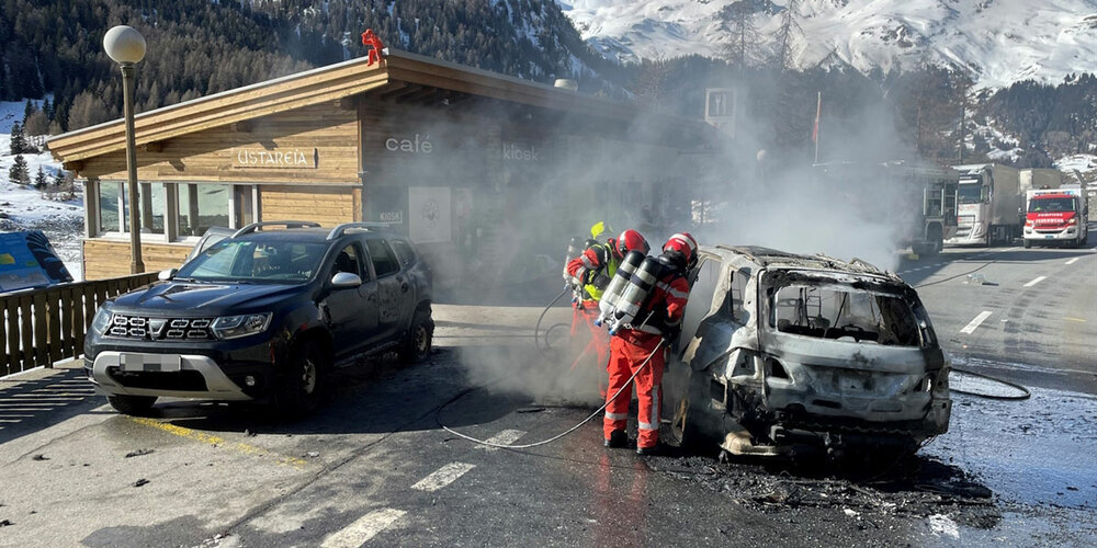 Am Mittwoch ist in Marmorera auf der Nationalstrasse N29 ein Auto in Brand geraten. Ein parkiertes Auto wurde dabei ebenfalls beschädigt.