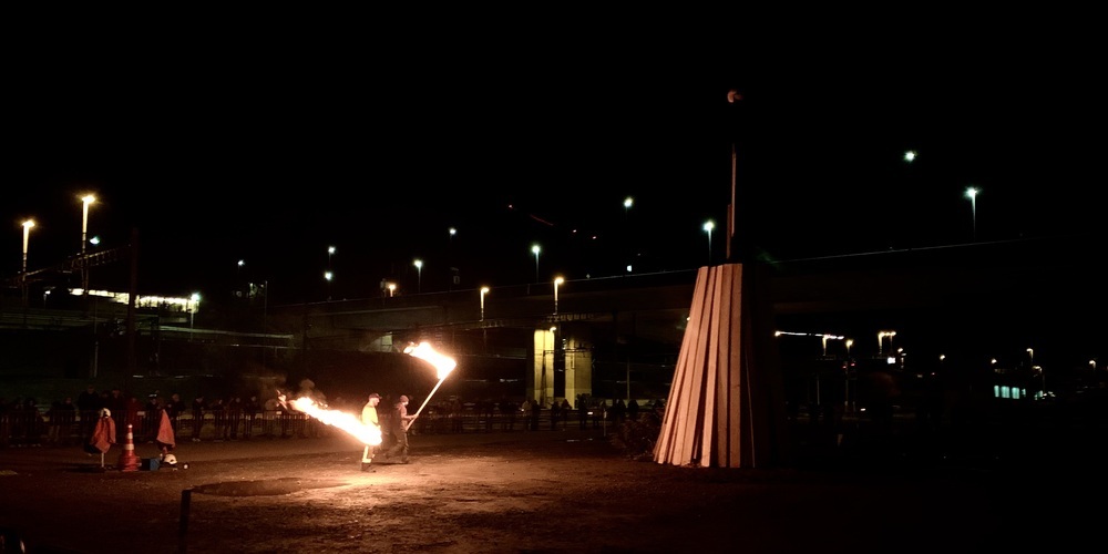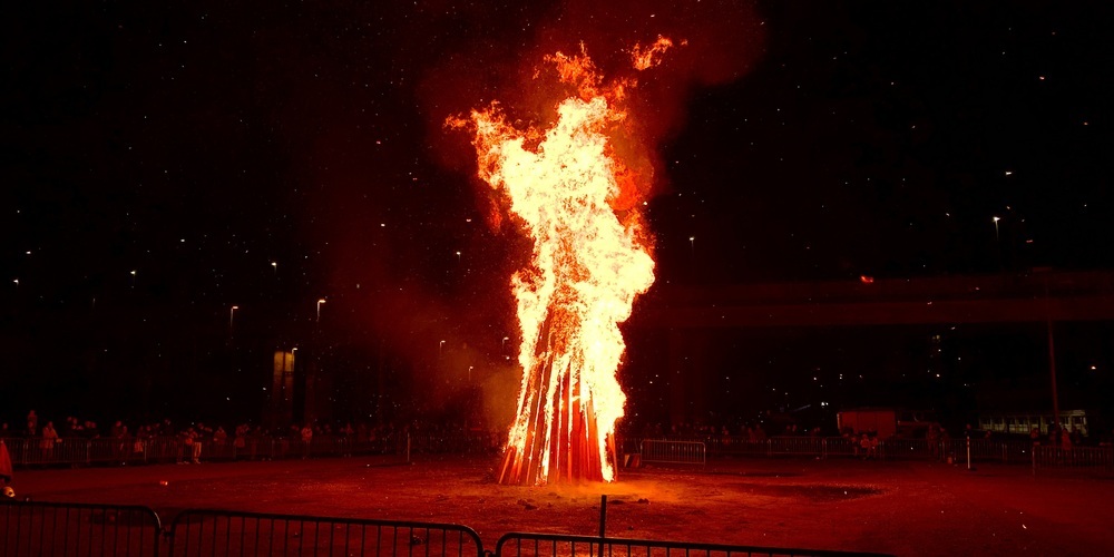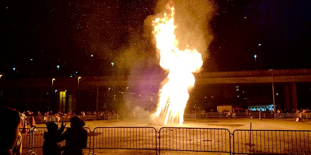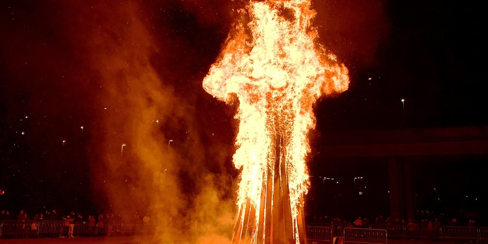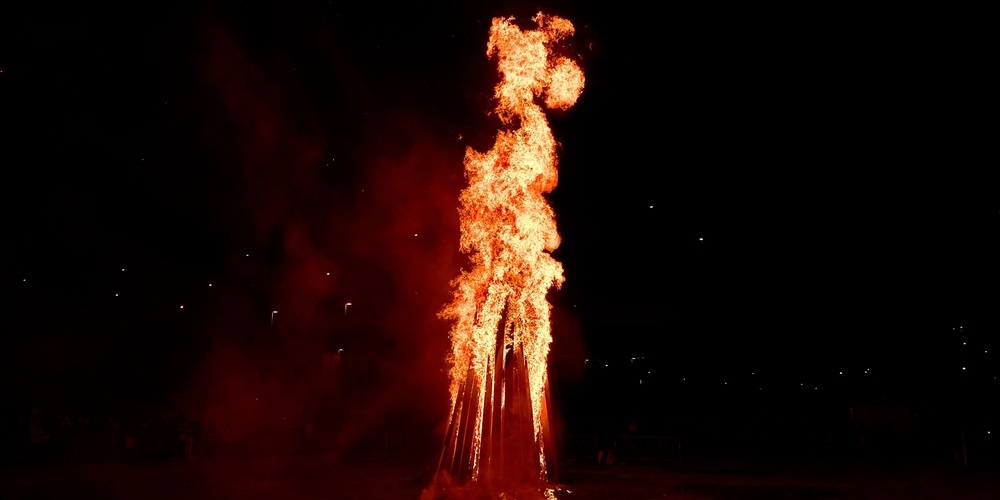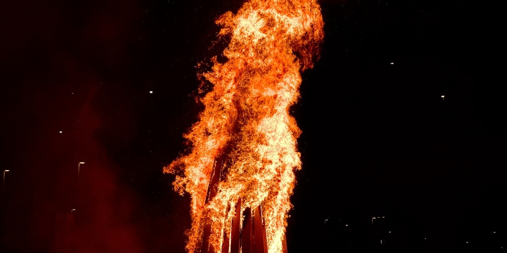 3, 2, 1…! Der Bögg geht in Flammen auf. Die Hitze ist spürbar und man sieht, wie die Hitzewellen die Landschaft verformen. Und das alles mitten auf dem Areal Bach vor hunderten Schaulustigen