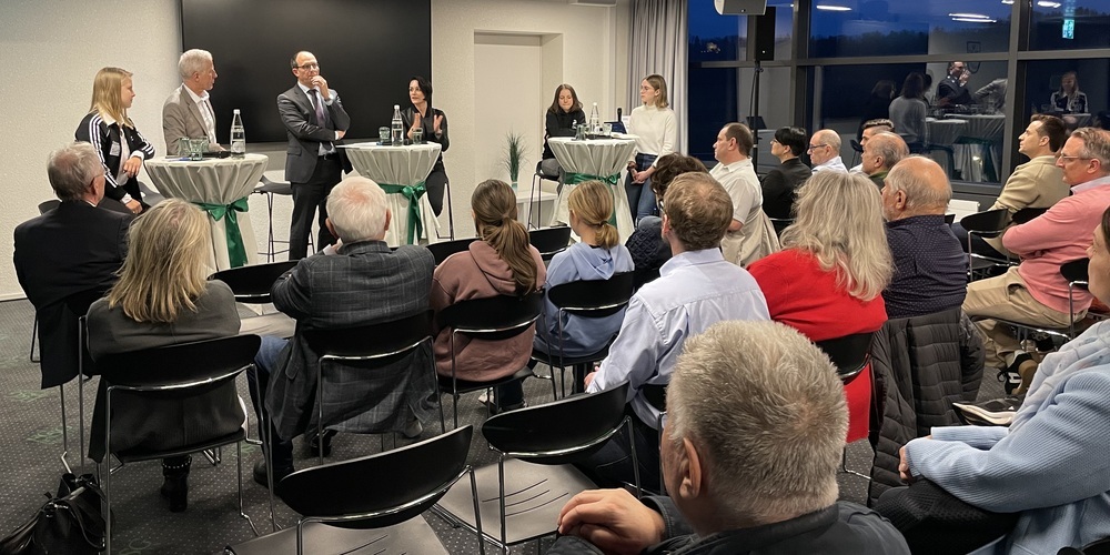 Der Fokus an diesem Abend galt jedoch vor allem den weiblichen Figuren am Ball: Am nachfolgenden Podium zum Thema «Frauenfussball. Fairplay. Politik.» waren gleich mehrere relevante Stakeholder insbesondere in Bezug auf die WEURO25 am Start: Neben Céline Bradke als vorderster Frau im Organisationsteam der Frauen-EM waren auch Marc Mächler, Regierungsrat Kanton St.Gallen, Aliena Umbricht, Co-Präsidentin Jungfreisinnige Region St.Gallen-Gossau, Mathias Gabathuler, Stadtrat der Stadt St.Gallen und Direktor Bildung und Freizeit und die FC St.Gallen-Spielerin Siv Schefer geladen. Moderiert wurde der Abend von Kantonsrätin Isabel Schorer. Rund 40 Personen kamen zum Anlass.