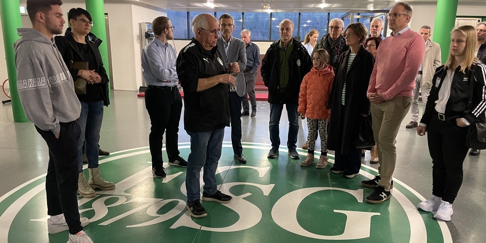 Ein besonderer Dank wurde nach der Führung nicht nur Roli Löw, sondern auch Stadion Gründervater Hans Hurni, ehemaliger Kantonalbankdirektor, Präsident des FC St.Gallen und FDP-Mitglied, ausgesprochen. Sven Bradke, Vize-Präsident und Parteileitungsmitglied der FDP St.Gallen, sowie Vater der später im Podium auftretenden Céline Bradke als stv. Projektleiterin der Frauenfussball-Europameisterschaft 2025 (WEURO 25), zeigte sich sichtlich begeistert ob Hurnis Erbe: «Wegen ihm sind wir hier – wegen ihm gibt es das Stadion. Er hat gesagt ‘wir müssen was machen’», erzählt Bradke. «Die damaligen Eckwerte für den Bau des Stadions waren 0 Franken Budget, kein Land und eine Volksabstimmung zum Gewinnen.» Hurni habe als FDPler die Finanzen immer hochgehalten, was zum Bau und Erfolg des Stadions beigetragen habe.