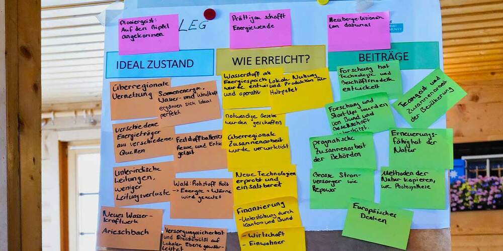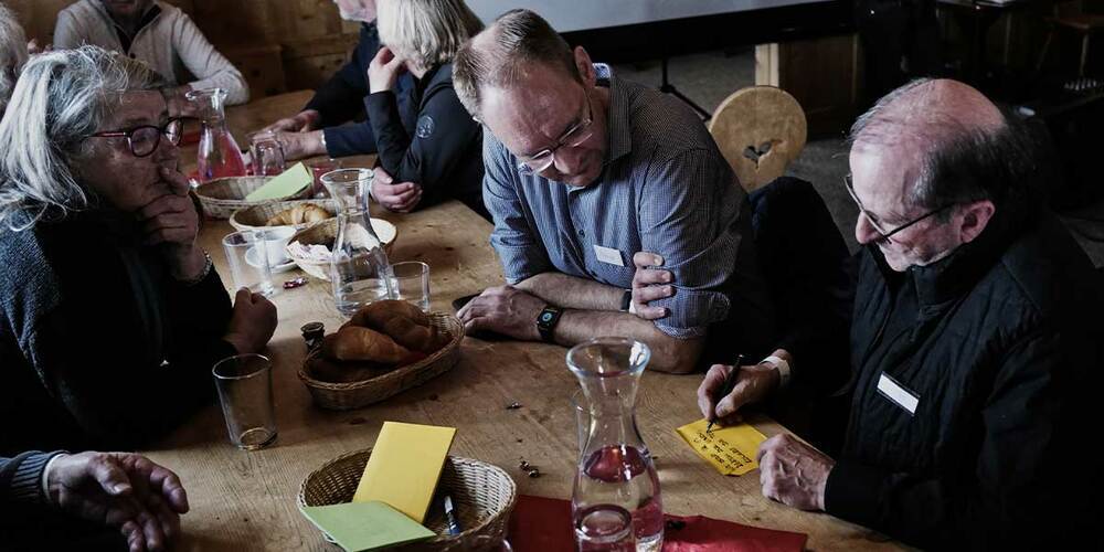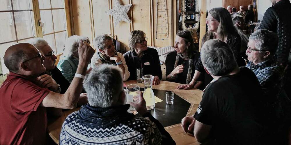 Seit mehreren Jahren arbeiten die Geschäftsführenden Sara Wiesendanger und Henrik Vetsch an einer Vision für die Heuberge. Mit den wärmeren Wintern schmilzt nicht nur der Schnee des Schlittelweges, sondern auch ein wichtiges Standbein des bisherigen Geschäftsmodells der Fideriser Heuberge dahin, welches stark auf Wintertourismus ausgerichtet war. Deshalb sind Ideen für die Zukunft des Betriebes umso mehr gefragt. Etwa 120 Personen sind deshalb der Einladung zum Zukunftstag am 17.03., durch Henrik Vetsch und Sara Wiesendanger im alten Berghaus Heuberge, gefolgt. Das Engagement der lokalen Bevölkerung, welche ein wichtiges Fundament für die Zukunft darstellt, war gleich von Anfang an spürbar. Moderiert wurde der Tag von Katrin Hauser mit ihrer Firma aus Fideris, die sich dafür einsetzt, zusammen gesellschaftlich tragfähige Lösungen für eine blühende Zukunft zu erarbeiten.