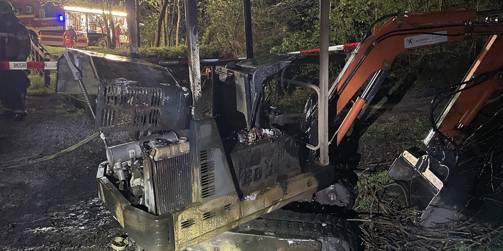 Am späteren Montagabend hat ein Brand einer Arbeitsmaschine einen Feuerwehreinsatz ausgelöst. Ein Kleinbagger stand in Vollbrand.