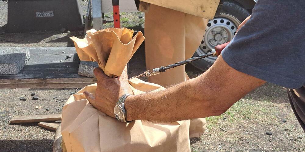 Schon bald waren die letzten Säcke abgefüllt und die feinen Anteile im Löschi-Bunker deponiert. Diese Löschi wird dann zum Abdecken des nächsten Meilers im Herbst wieder verwendet; mit dabei sicherlich auch noch einige fünfhundert Jahre alte Stücke des ursprünglichen Materials, welches sich die Malanser für den Start im Jahr 2019 bei der Kartause Ittingen im Kanton Thurgau beschafften. Nun wurde der Köhlerplatz fein säuberlich aufgeräumt, die Gerätschaften gereinigt und verstaut und auch die Säcke mit den kleinen Stücken für den späteren Abtransport bereitgestellt.